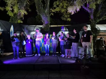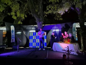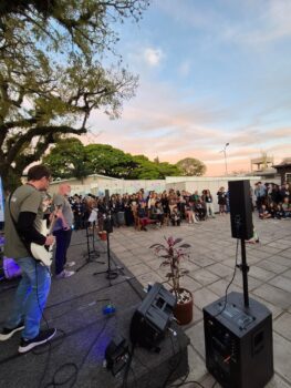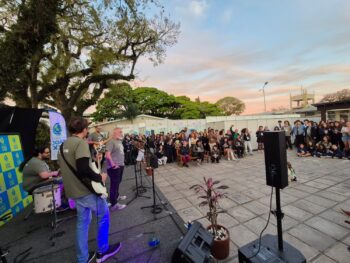 E, no João XXIII a cultura está sempre presente nas atividades e aprendizagens pedagógicas e de celebração. O Seguidor F destacou que “o evento é um espaço de conhecimento, de cultura e colaborativo. E essa colaboração é o primeiro passo para o sucesso de todos que estão aqui. O conhecimento parte de dentro da escola para a sociedade. E eu como representante da sociedade ressalto que todos os projetos expostos estavam muito bons e o que mais me tocou foi a parte da cultura hip hop, da arte, do grafite”. Para abrilhantar o evento e tornar a cultura ainda mais presente, a banda com os professores do João XXIII, Guido (vocal), Rodrigo (guitarra), Yuri (bateria) e Arthur (baixo), cantaram “Ainda não postamos as notas”. Na sequência, a profª Aline se apresentou com o prof. Rodrigo (violão) e os estudantes, representantes do GEJ (Grêmio Estudantil do João) cantaram a canção do Colégio, enquanto os jurados deliberavam sobre os trabalhos expostos na MIC. Após a o momento musical, foram anunciados os grupos premiados. Os professores orientadores também ganharam medalha como reconhecimento.