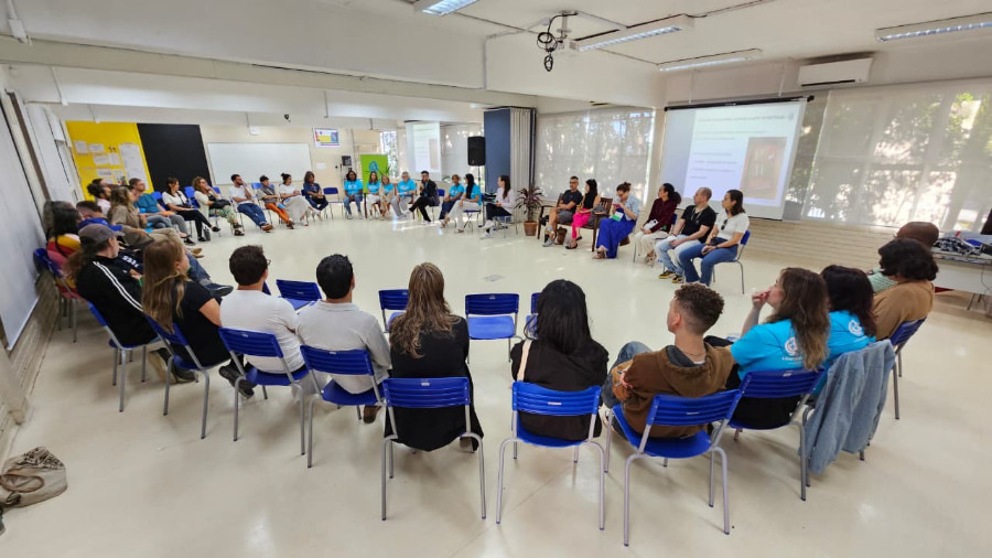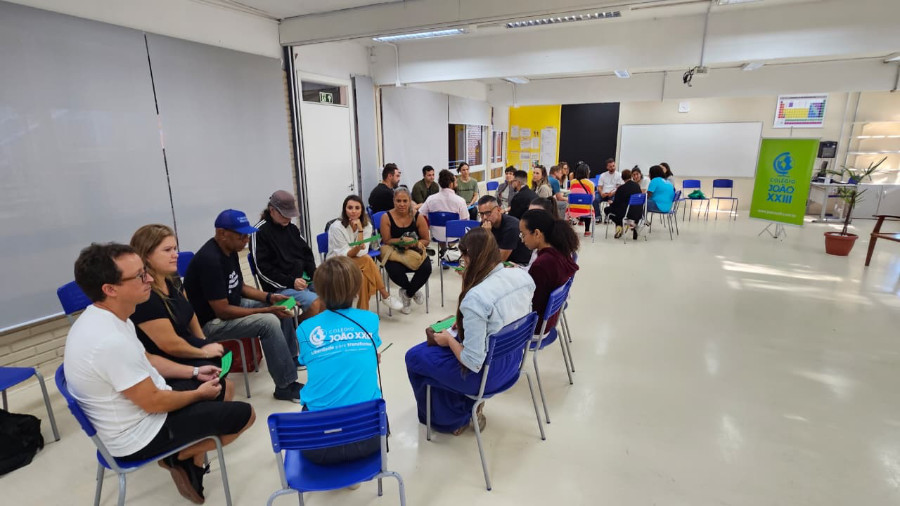 Mais do que apresentar o Colégio, o momento foi pensado como um espaço de escuta, diálogo e construção coletiva. Inspirados na obra “Ensinando Comunidade – uma pedagogia da esperança”, de Bell Hooks, as famílias participaram de uma dinâmica em pequenos grupos, refletindo sobre pertencimento, participação, responsabilidade e convivência, valores que sustentam nosso projeto educativo.