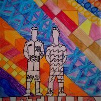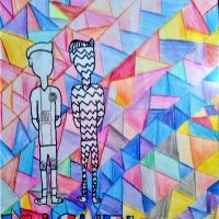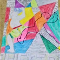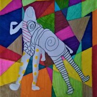 O desafio proposto aos estudantes era criar uma composição visual com o desenho da figura humana como elemento criativo, representado pela silhueta do corpo humano, numa boa relação figuras/fundo. Para o fundo desta obra, a proposta é trabalhar com o abstracionismo geométrico. Usando para completar esta composição os elementos da linguagem visual trabalhados no sexto ano, como linha, forma, cor, textura, sombreado.