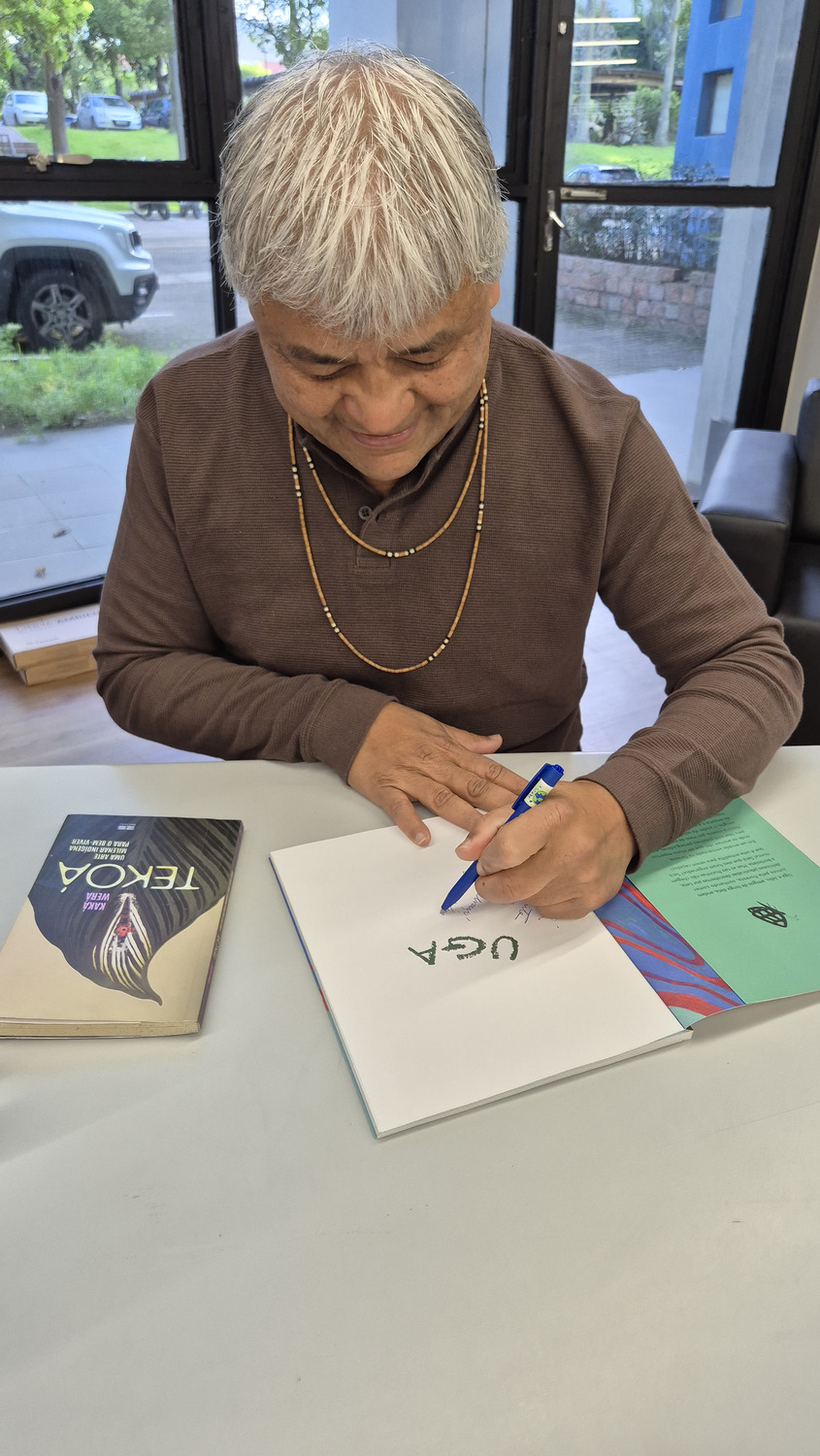 Descendente do povo Tapuia e acolhido pela comunidade Guarani, nascido em São Paulo, o escritor, educador e conferencista indígena ele é autor de 20 livros. Um deles “A Terra dos Mil Povos”, foi eleito pela USP como um dos 200 livros fundamentais para compreender o Brasil e está entre as leituras obrigatórias para o vestibular da UFRGS 2026.