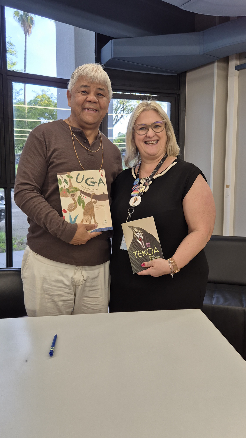 As obras literárias do Kaká Werá – A Terra dos Mil Povos (leitura obrigatória do vestibular da UFRGS 2026), Uga e Tekoá: uma arte milenar indígena para o bem viver, inspiram nossos estudos anuais e duas delas são tema da edição da Revista Lugarejo 2025, “Educar para o cuidado: somos parte da terra e ela é parte de nós”.