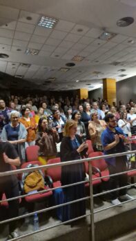 A abertura contou com as falas da diretora Paula Poli, da vice-diretora Fernanda Radajeski, do presidente da Fundação Educacional João XXIII, José Carlos Conceição e da Ianne Ely Godoi Vieira, coordenadora do Núcleo de Formação do Colégio João XXIII. A mediação da conversa foi realizada por Bruno Kaigang, o primeiro doutor e docente indígena da Universidade Federal do Rio Grande do Sul (UFRGS). Após as falas, Kaká Werá deu boas-vindas aos participantes e os convidou para cantarem e dançarem ao som da música que reverencia a terra, água, o fogo e o ar, a qual se originou do povo Aruak. A dança e a música envolveram todos os participantes em um convite para a imersão que estava por vir.