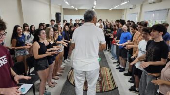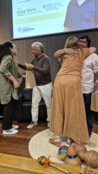 A coordenadora do Núcleo de Formação ressalta que o encontro foi profundamente simbólico para o Colégio, “O encontro com o Kaká nos aproxima e convoca para uma Educação pelo Cuidado, entendendo o compromisso ético de uma escola que reconhece a necessidade de estudo e aprofundamento sobre temas que problematizem e dialoguem com nossa vida em relação com a natureza. Sua contribuição para a Revista Lugarejo, na edição deste ano, reforça esse convite.”