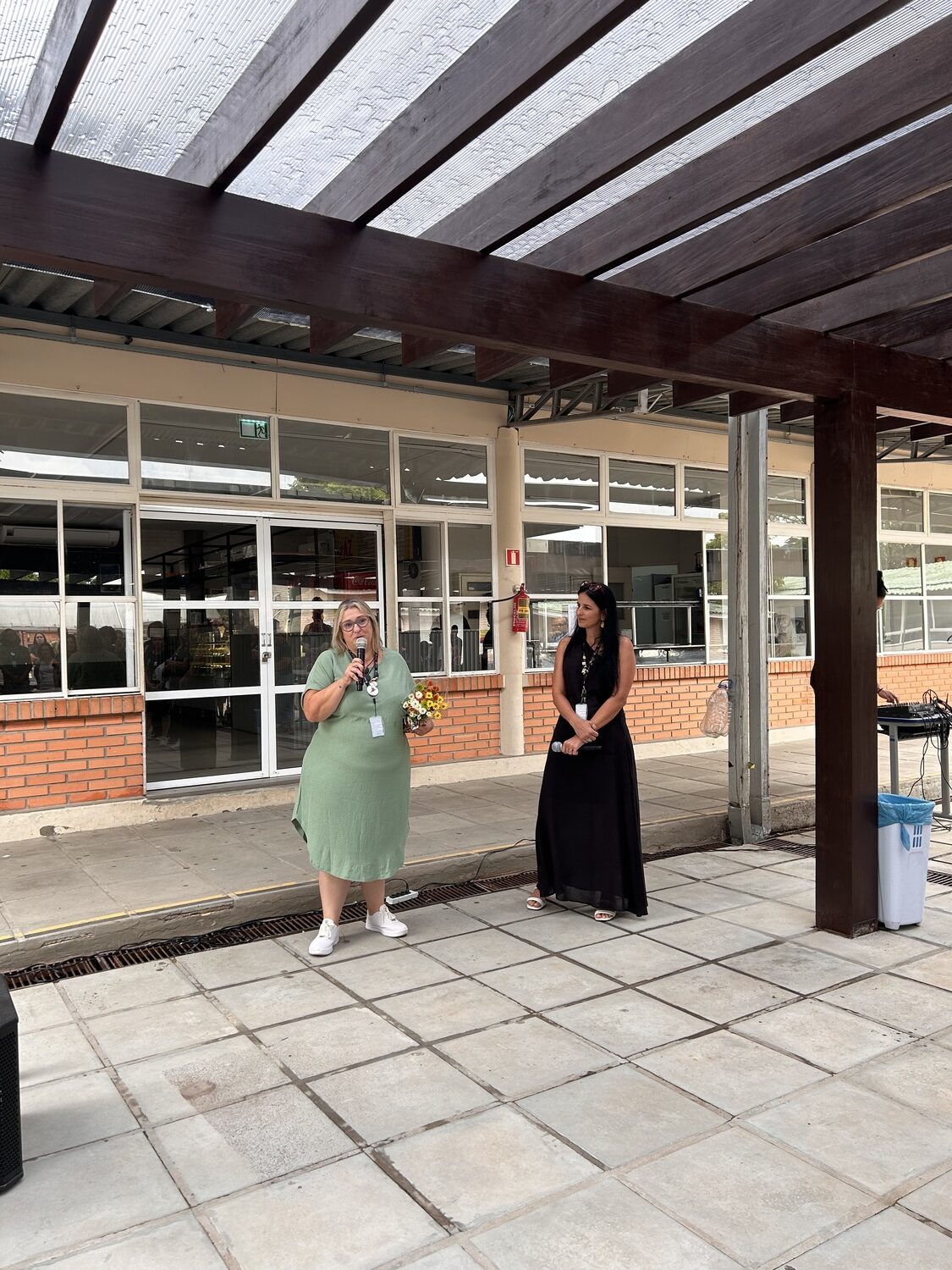 O dia foi marcado pelo reencontro repleto de afeto e acolhimento. Na chegada ao Colégio, os Profissionais se reuniram no Pátio Central onde foram recebidos pela equipe diretiva e pedagógica. A diretora Paula Poli aproveitou o momento para apresentar a nova vice-diretora Fernanda Vencato Radajeski.