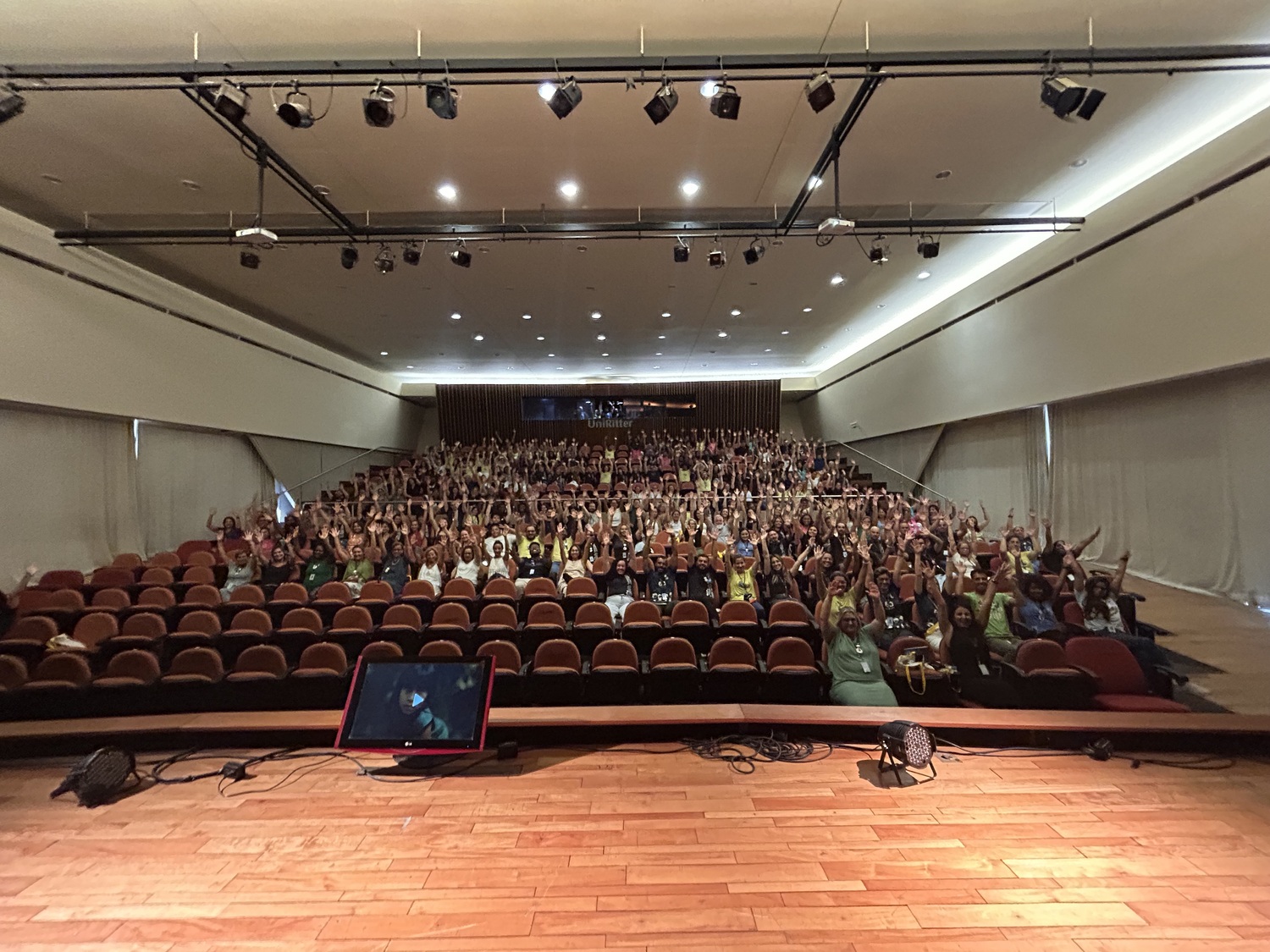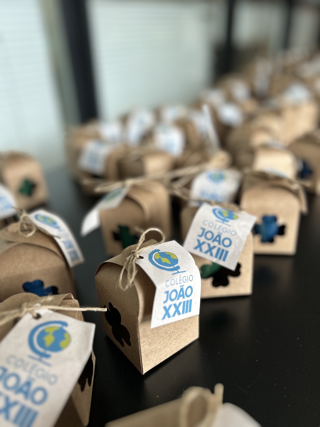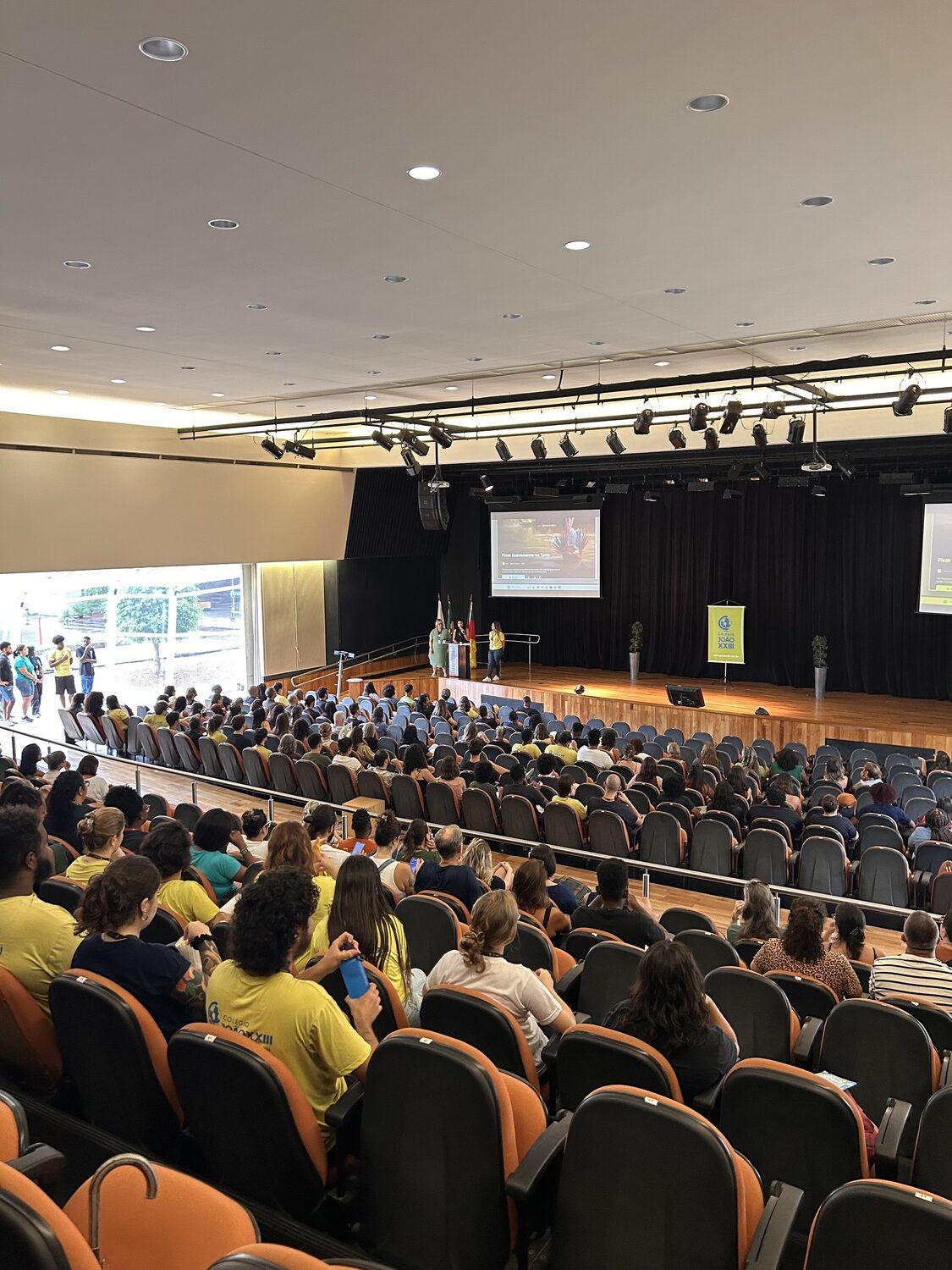Para dar andamento ao Seminário, todos se direcionaram para as salas, de acordo com as palavras grafadas nas sementes, para refletirem sobre o documentário e o educar para o cuidado. No retorno ao Pátio Central foi realizada a foto oficial com toda a equipe em frente ao painel alusivo aos 60 anos do João XXIII.
