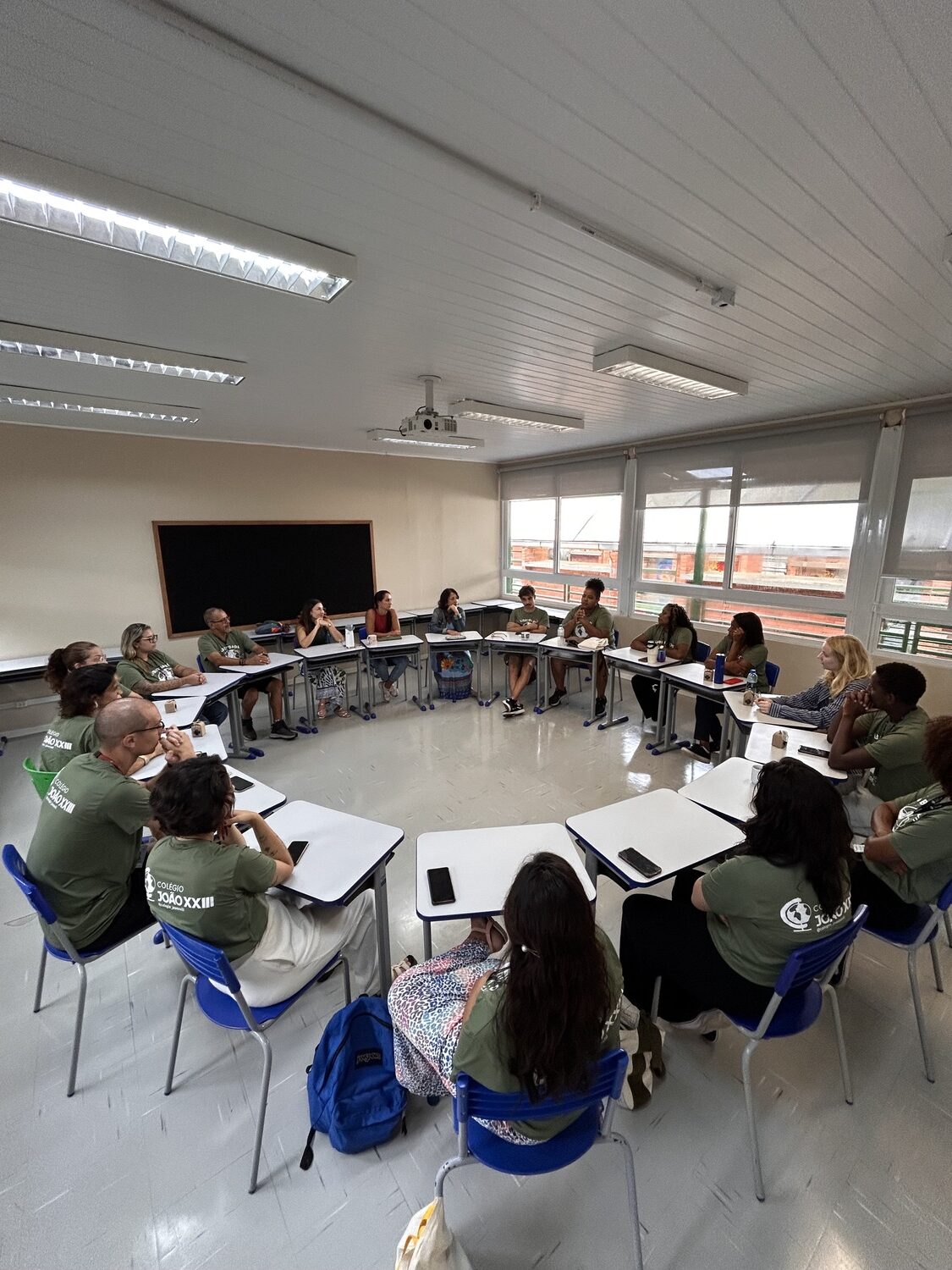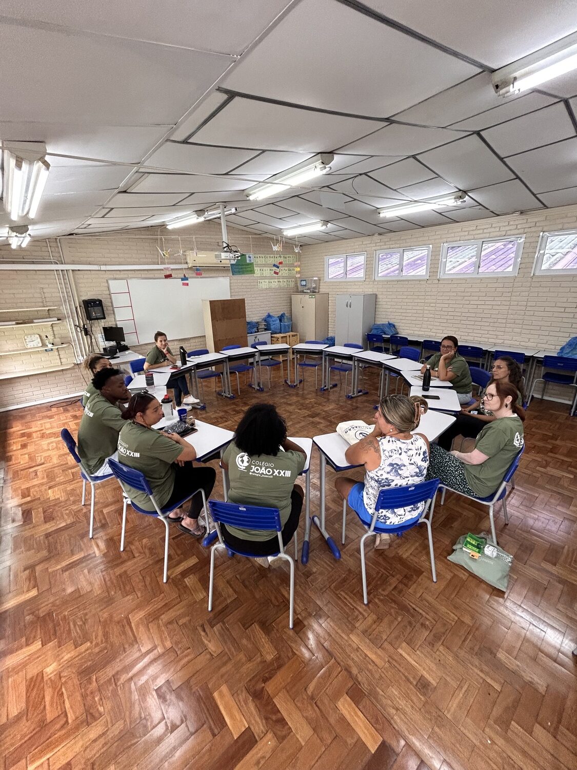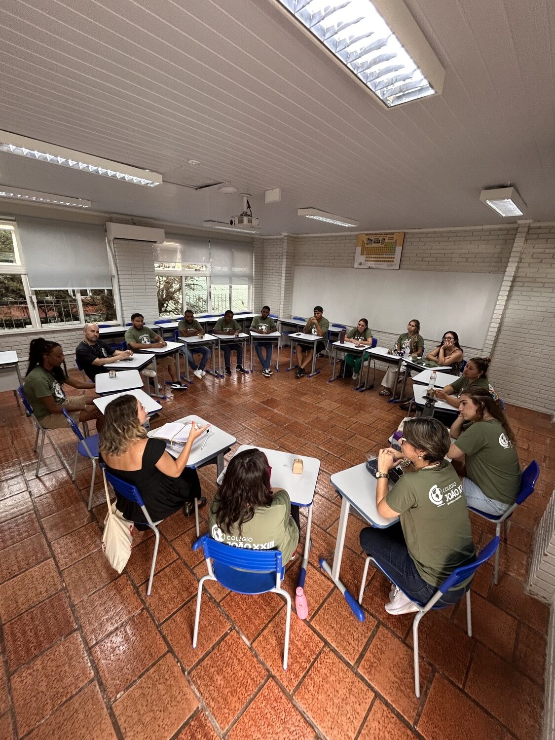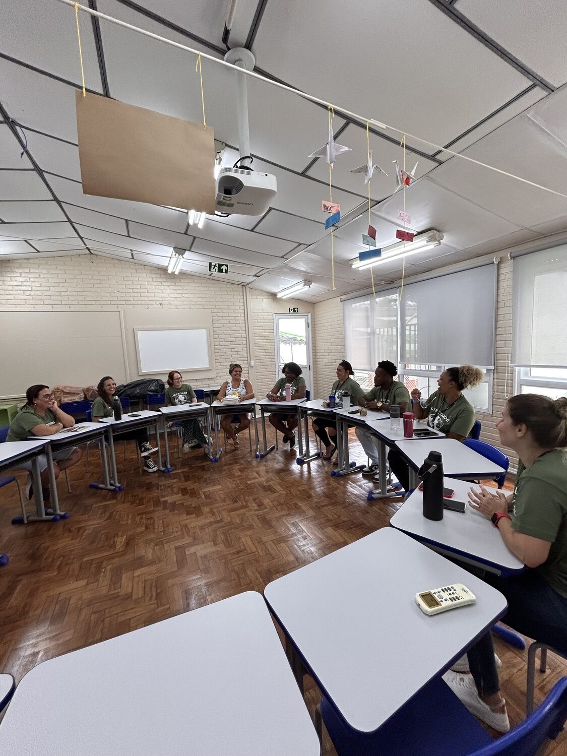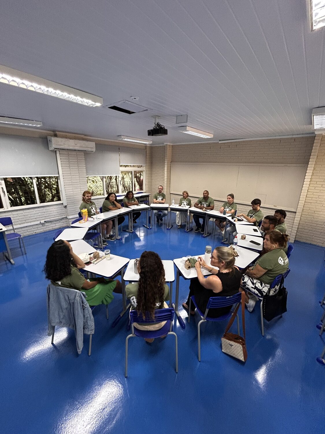 No turno da tarde as equipes do Administrativo da Escola tiveram um momento de formação. Com a liderança da gerente administrativo-financeira, Adriana Goytacaz, os Profissionais participaram da dinâmica do porto seguro, em que atribuíram a colegas bolinhas coloridas de papel simbolizando conexões pessoais ou de apoio no trabalho.