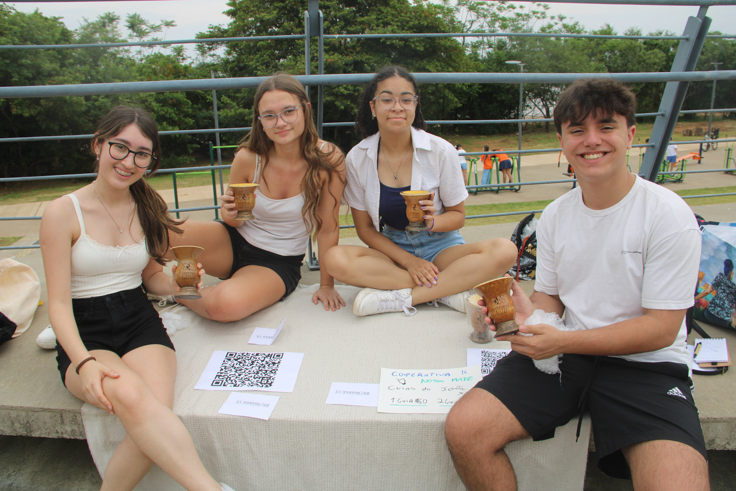 A confraternização contou com a participação de mais 700 pessoas, entre crianças, jovens, profissionais, educadores e famílias, que deram um colorido especial à manhã nublada de sábado. Estudantes do Terceirão venderam sacolés e água mineral, enquanto os da 1ª série do Ensino Médio, integrantes da Cooperativa Escolar “Nosso Mate”, do componente curricular “Projeto de Vida”, venderam cuias produzidas durante o segundo semestre. Todos se divertiram em brincadeiras musicais promovidas pelos professores de educação física Aurélio e Paolo e com o professor de música, Bob Bopsin.