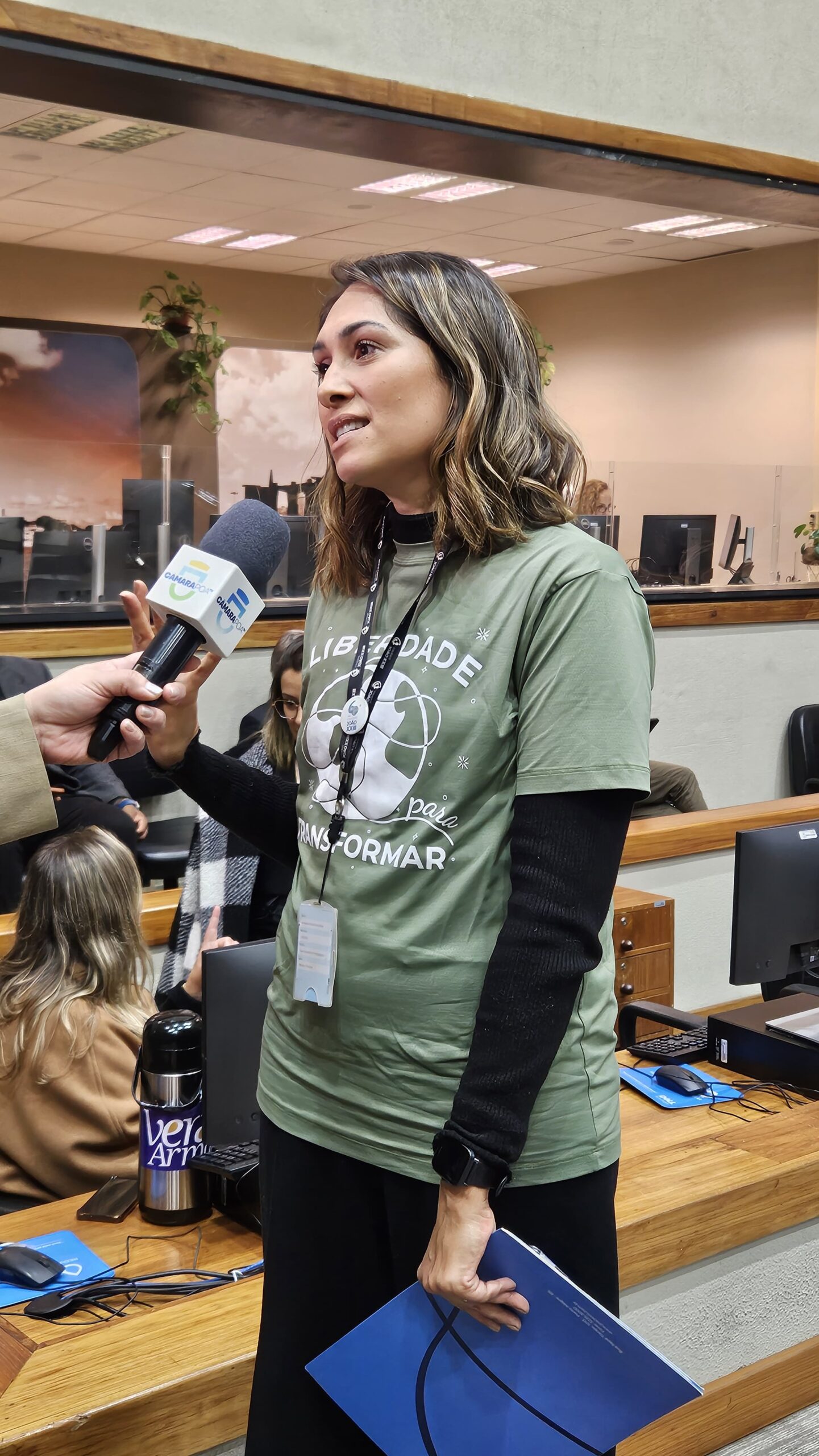Entrevista com a vereadora Grazi Oliveira, educadora Eduarda Morales e o estudante Joaquim Brusque: