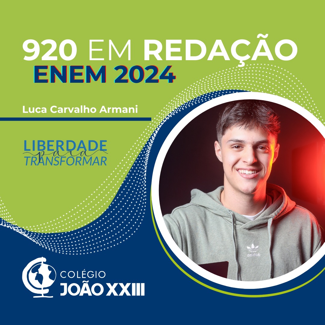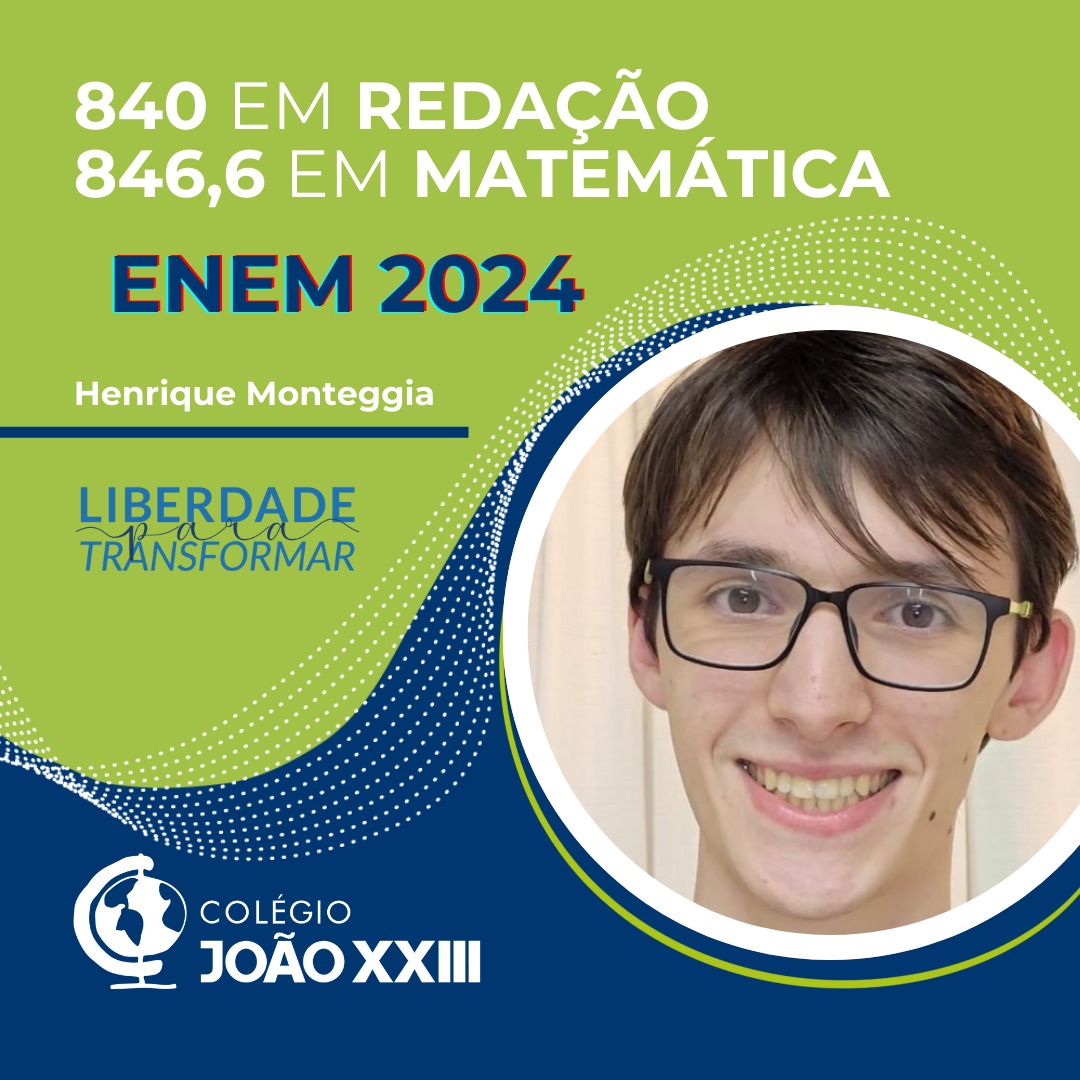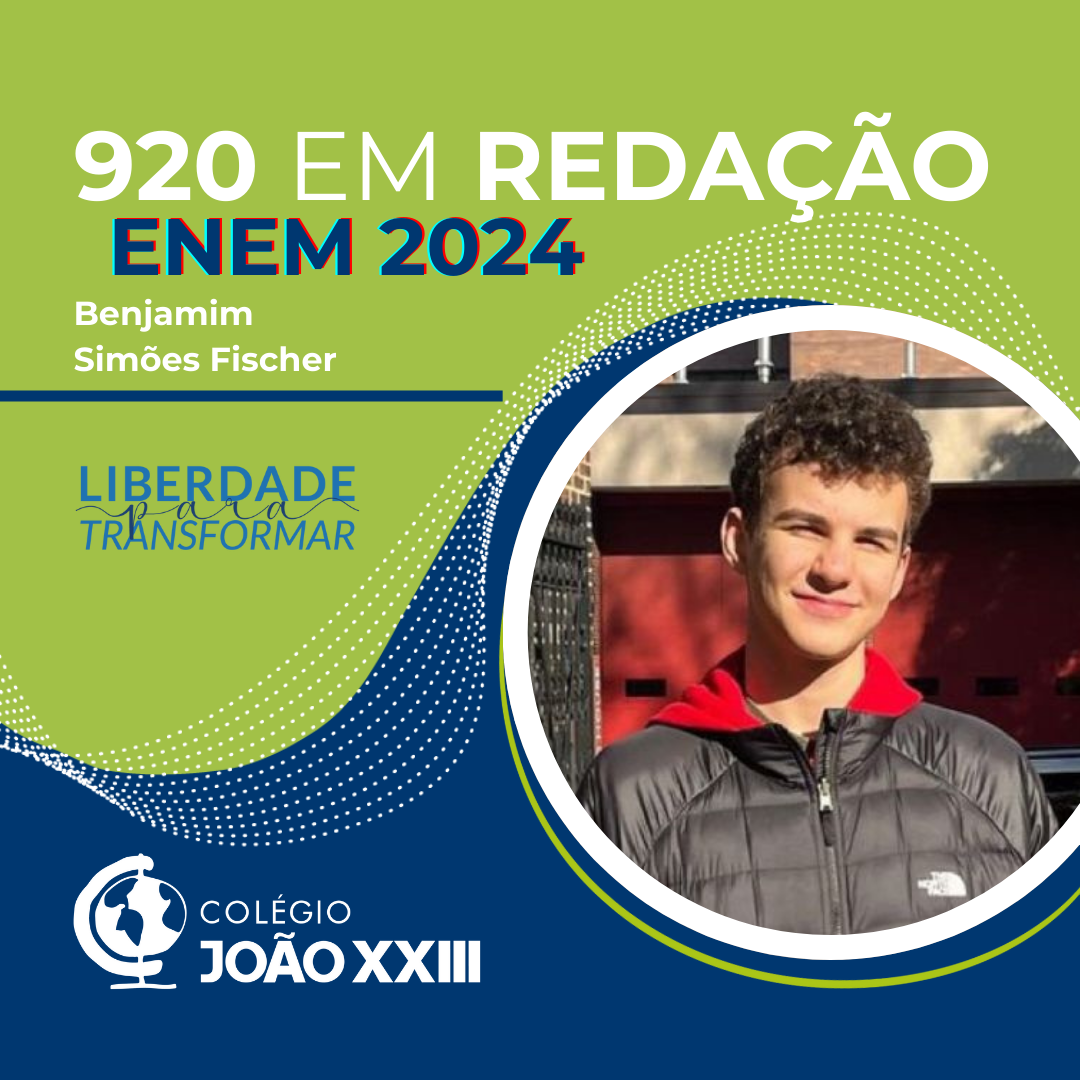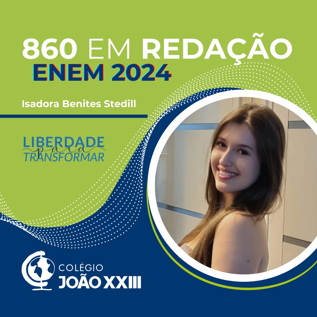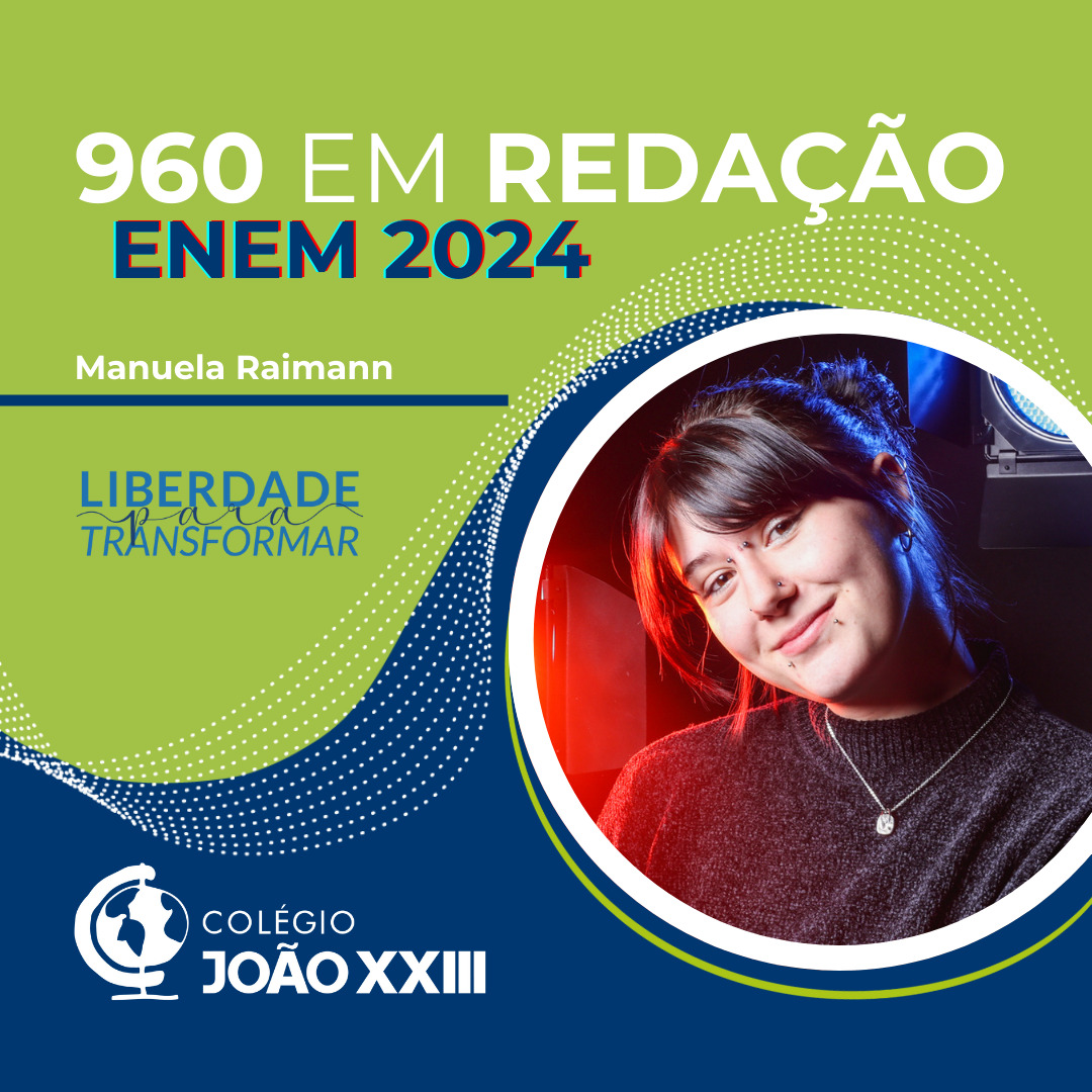 Os resultados do Exame Nacional do Ensino Médio (Enem) foram divulgados nessa segunda-feira (13) e os estudantes do Terceirão 2024 do Colégio João XXIII obtiveram bons resultados na prova de redação, cujo tema nessa edição foi “Desafios para a valorização da herança africana no Brasil”. Essa temática dialoga com a proposta pedagógica do Colégio João XXIII, pautada, dentre outros princípios, pelo antirracismo, pela solidariedade e pelo humanismo. O destaque vai para a estudante Manuela Raimann, que obteve 960 pontos com o seu texto.