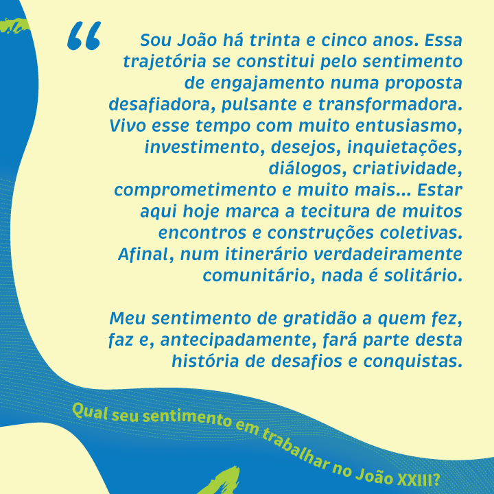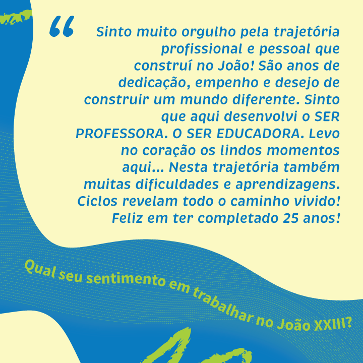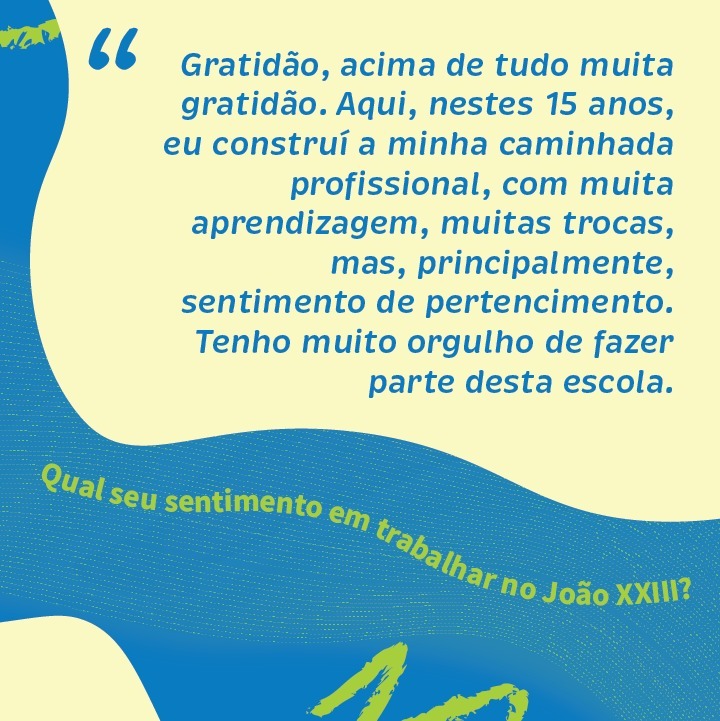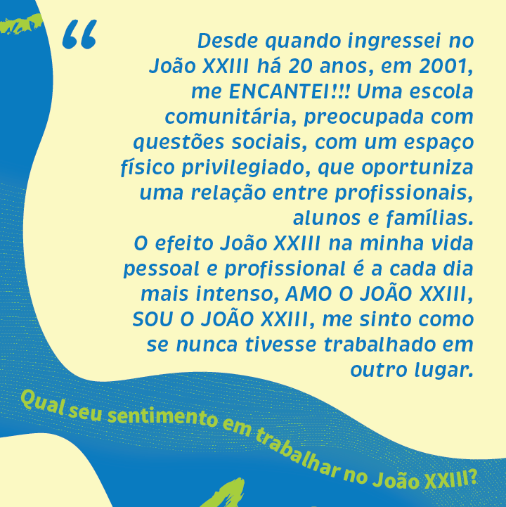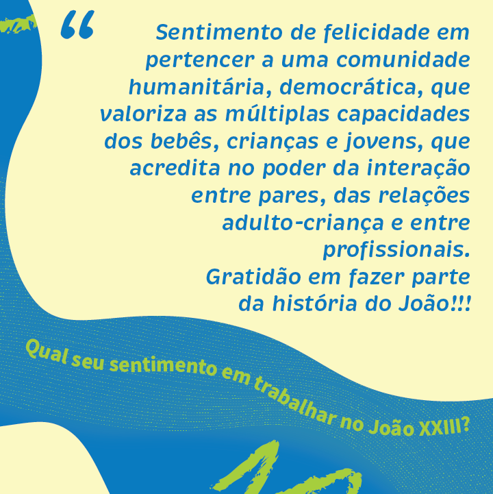 Nosso agradecimento em nome de toda a comunidade do João aos nossos queridos professores e professoras. Nessa data, aproveitamos também para homenagear e demonstrar toda a nossa gratidão aos demais profissionais que diariamente colaboram para o funcionamento desse nosso espaço de aprendizado, trocas e vivências.