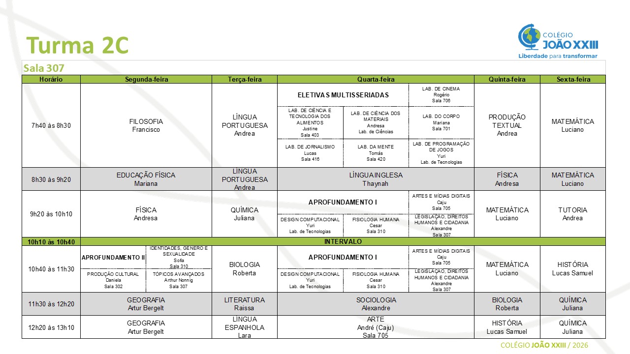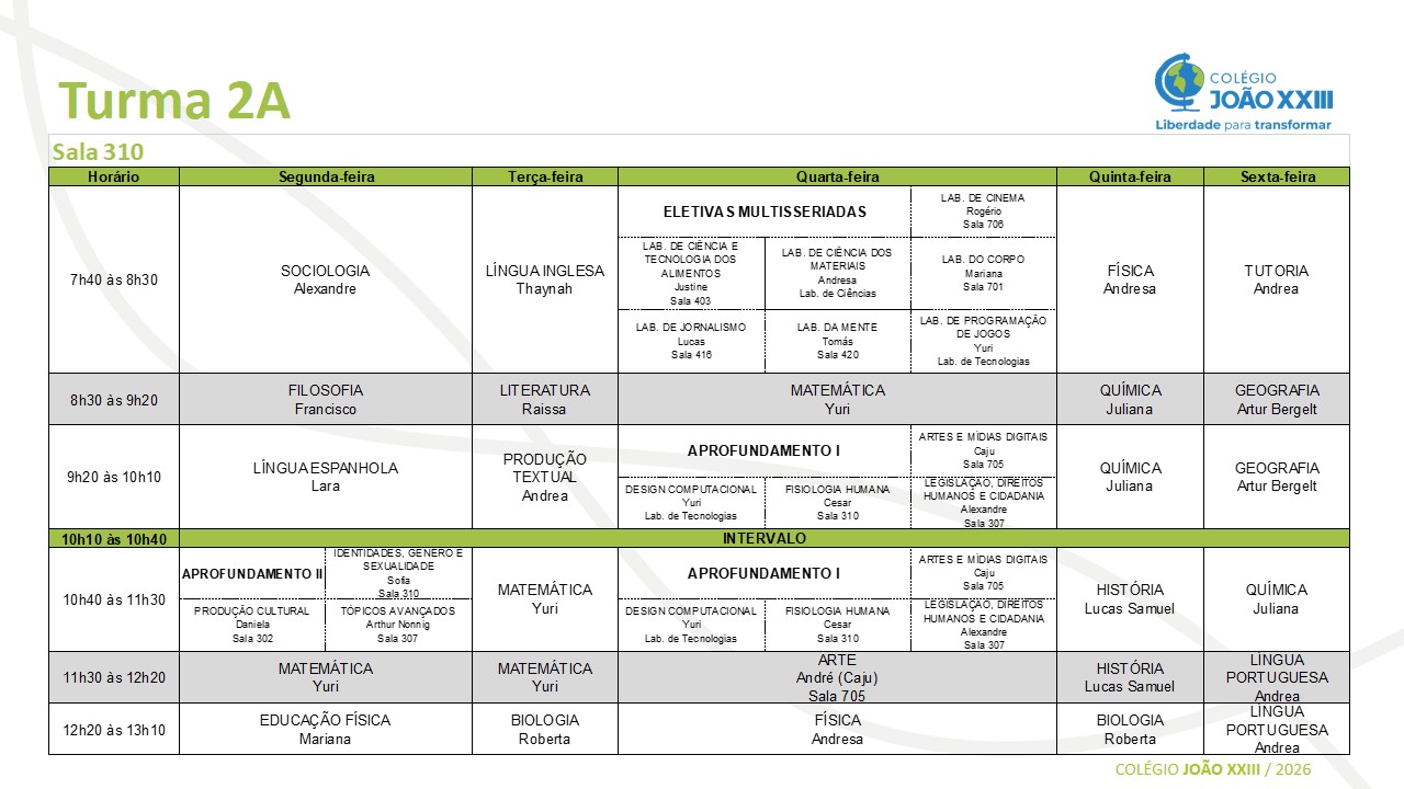 Horário escolar: 2ª série do EM