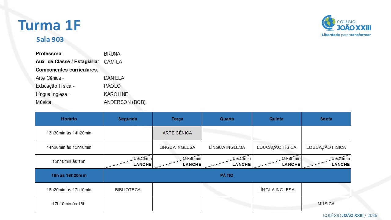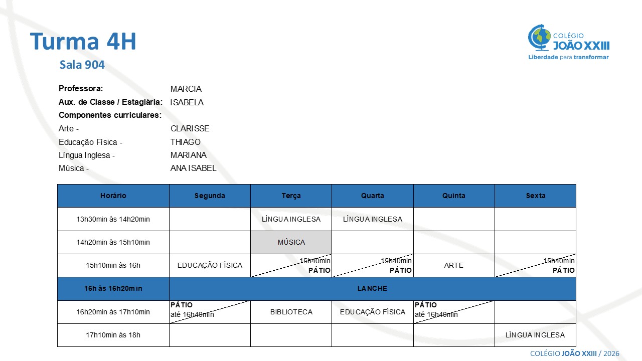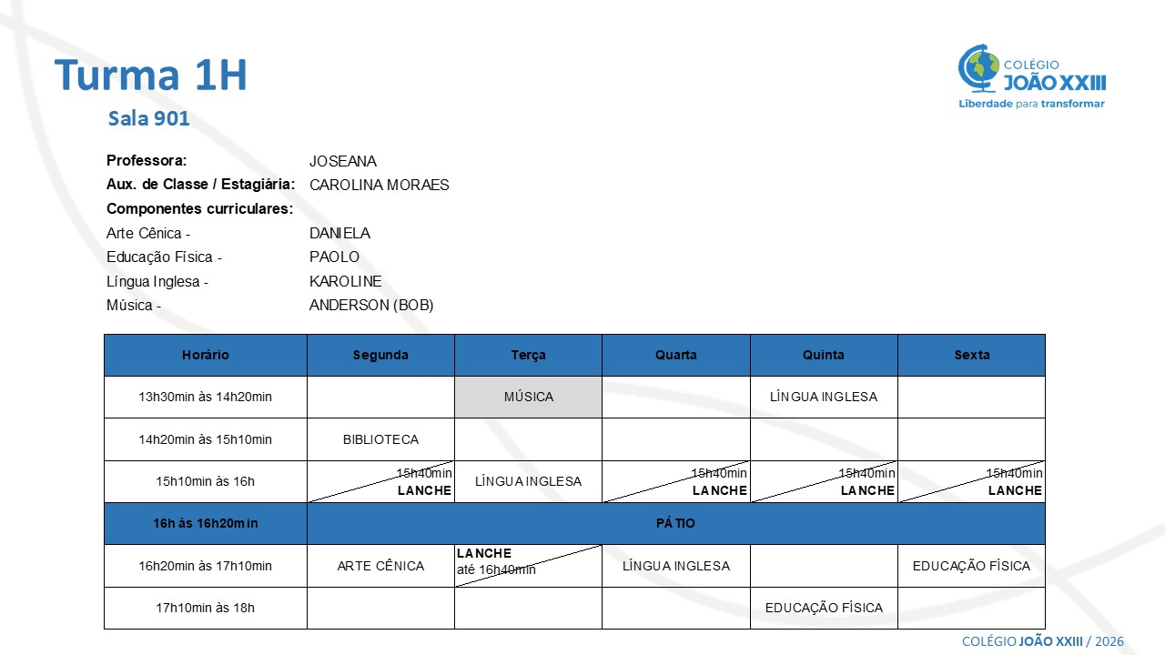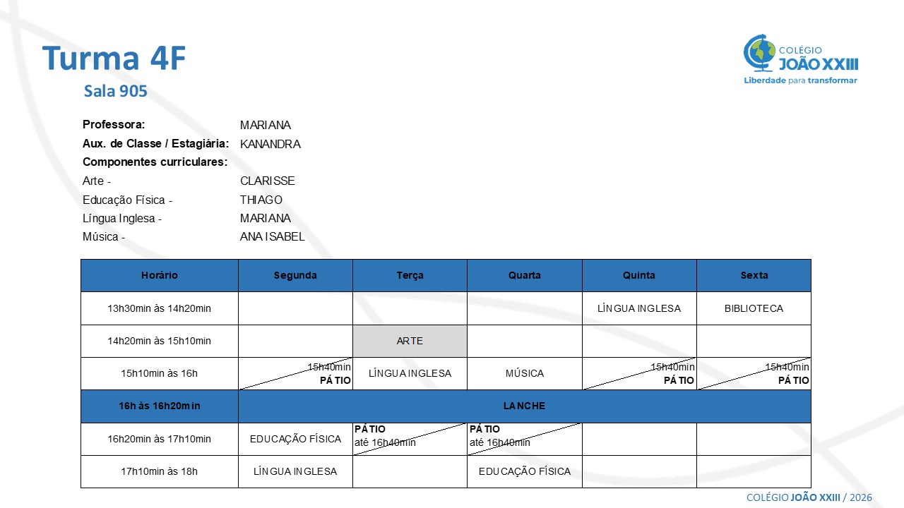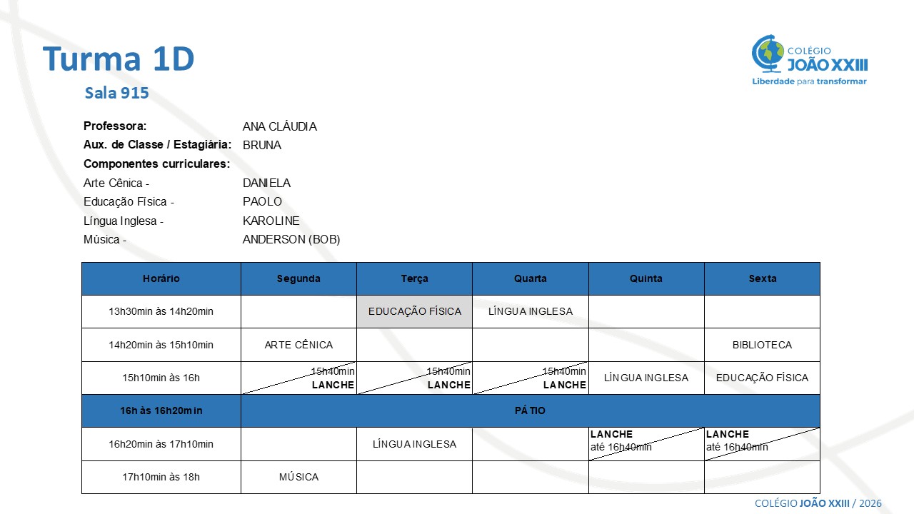 Horário Escolar: Núcleo da infância – 1º ao 4º ano