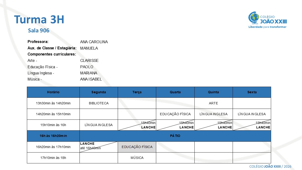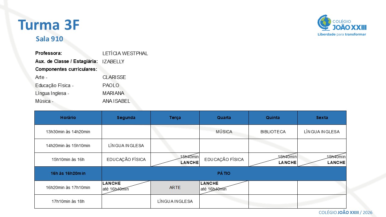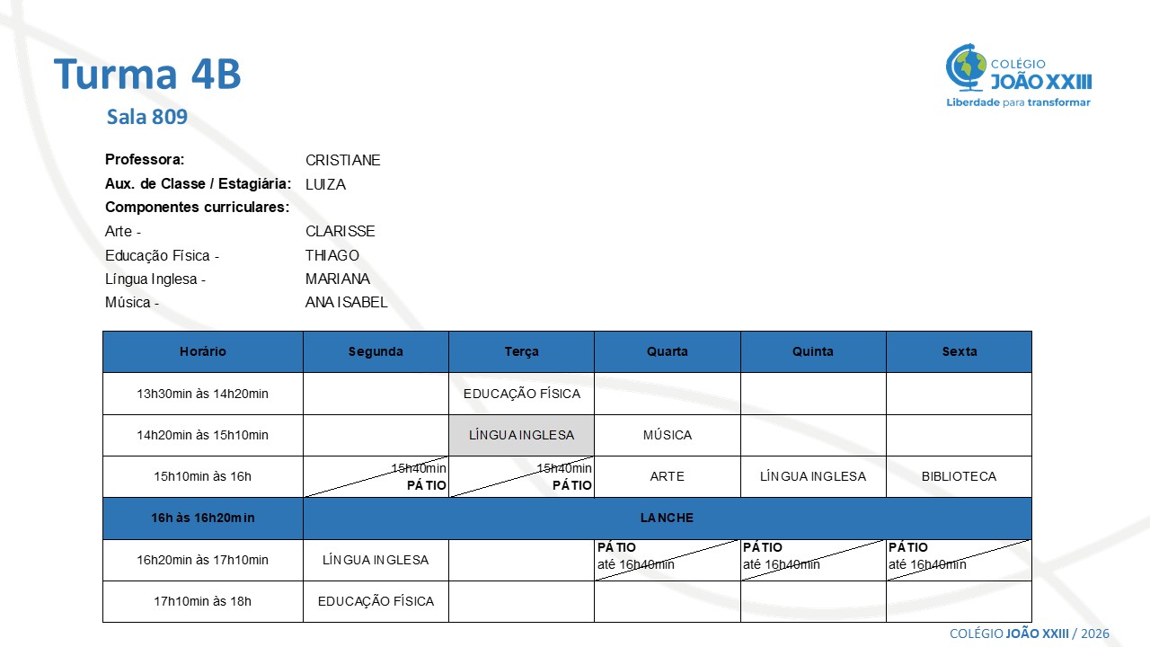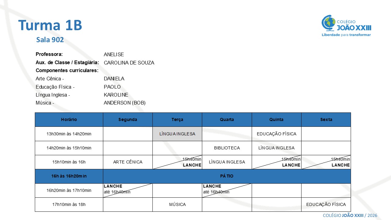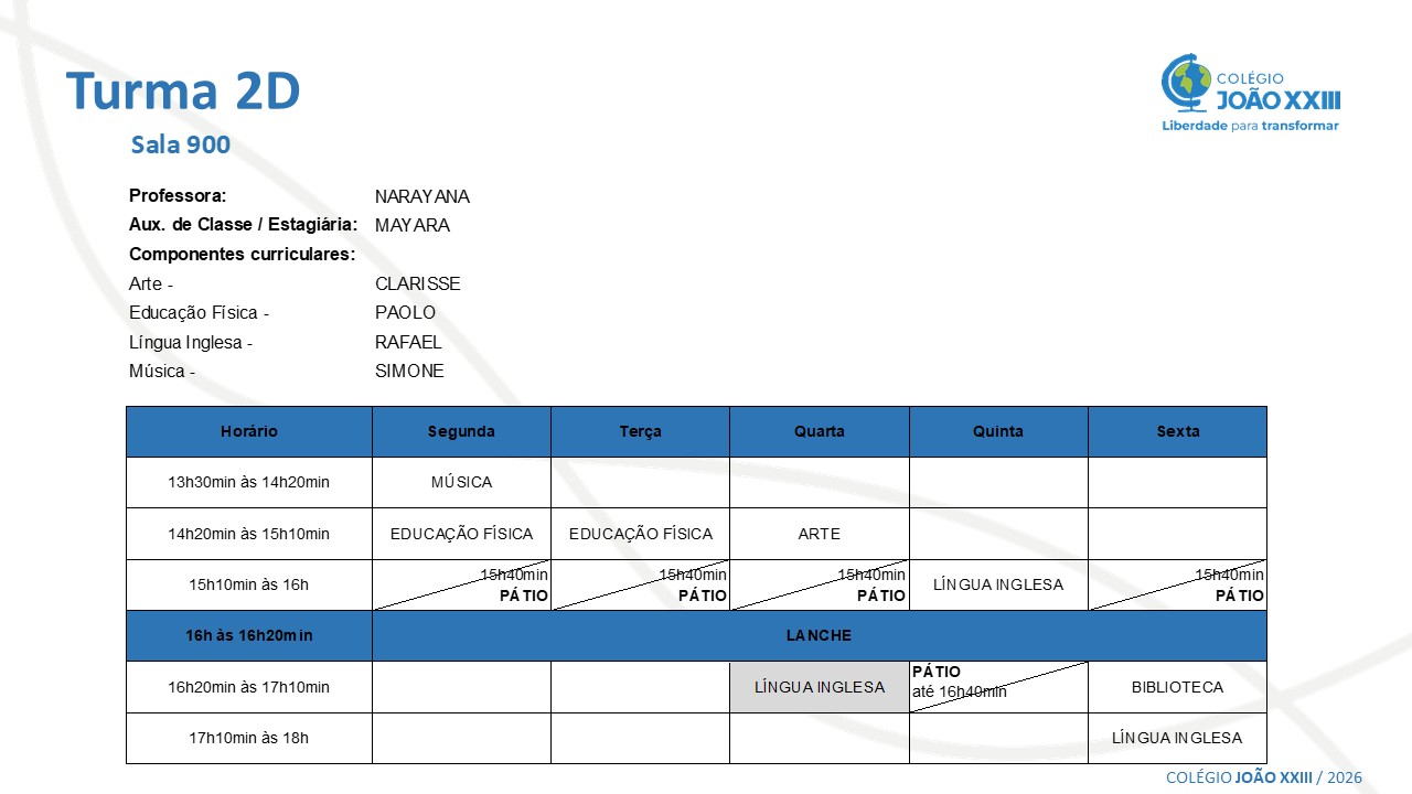 Horário Escolar: Núcleo da infância – 1º ao 4º ano