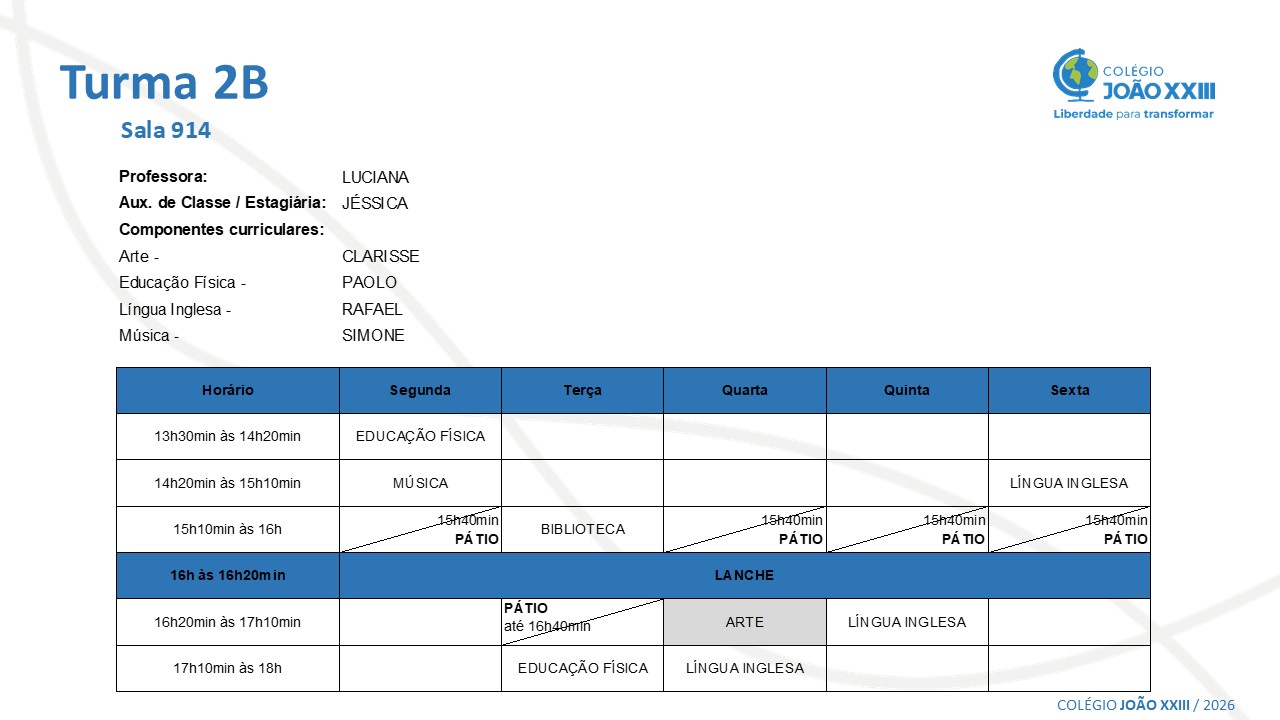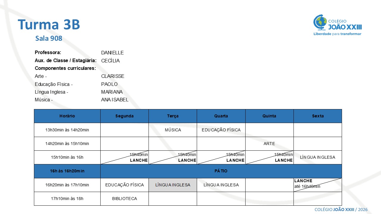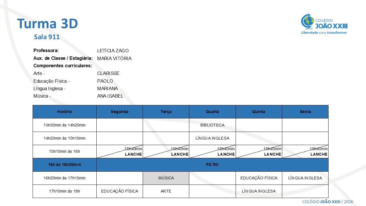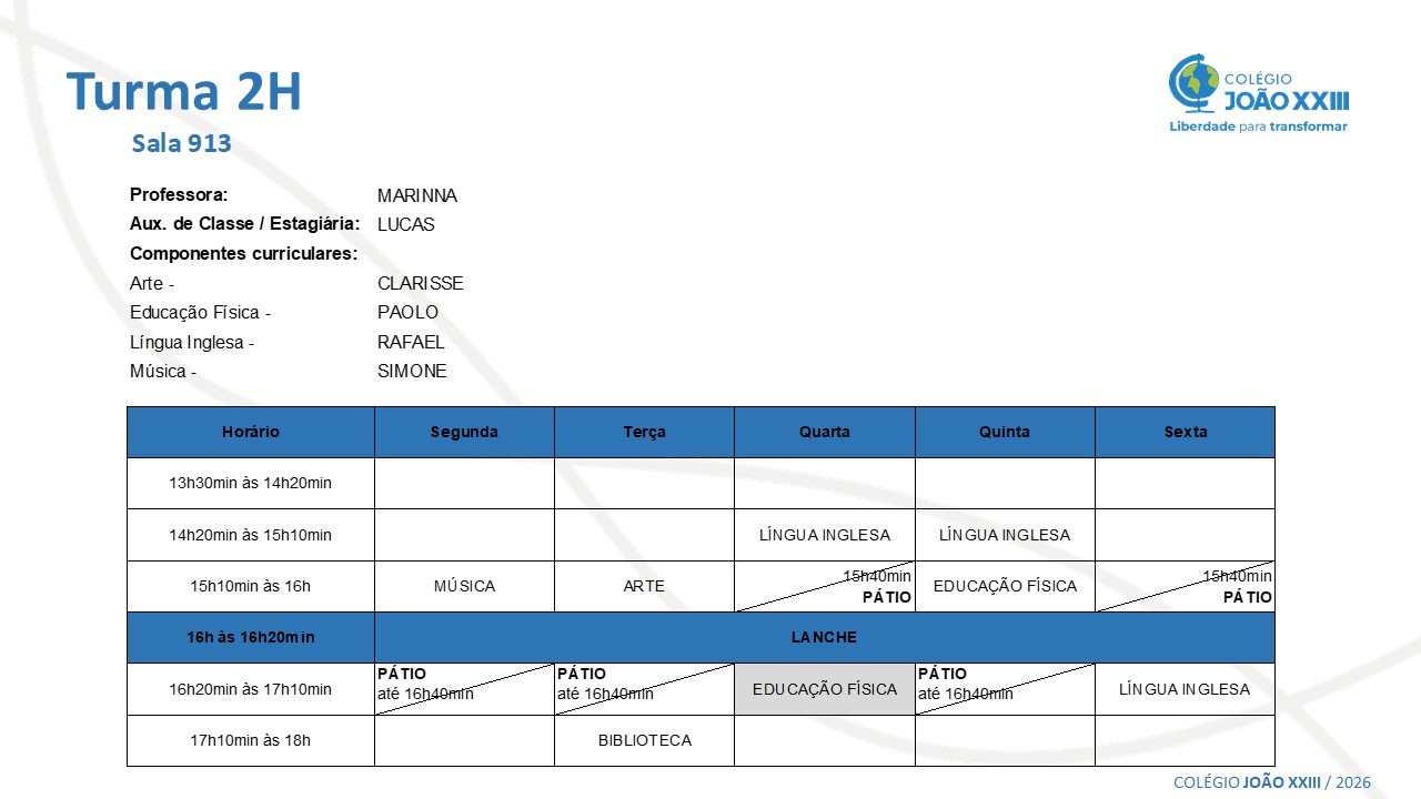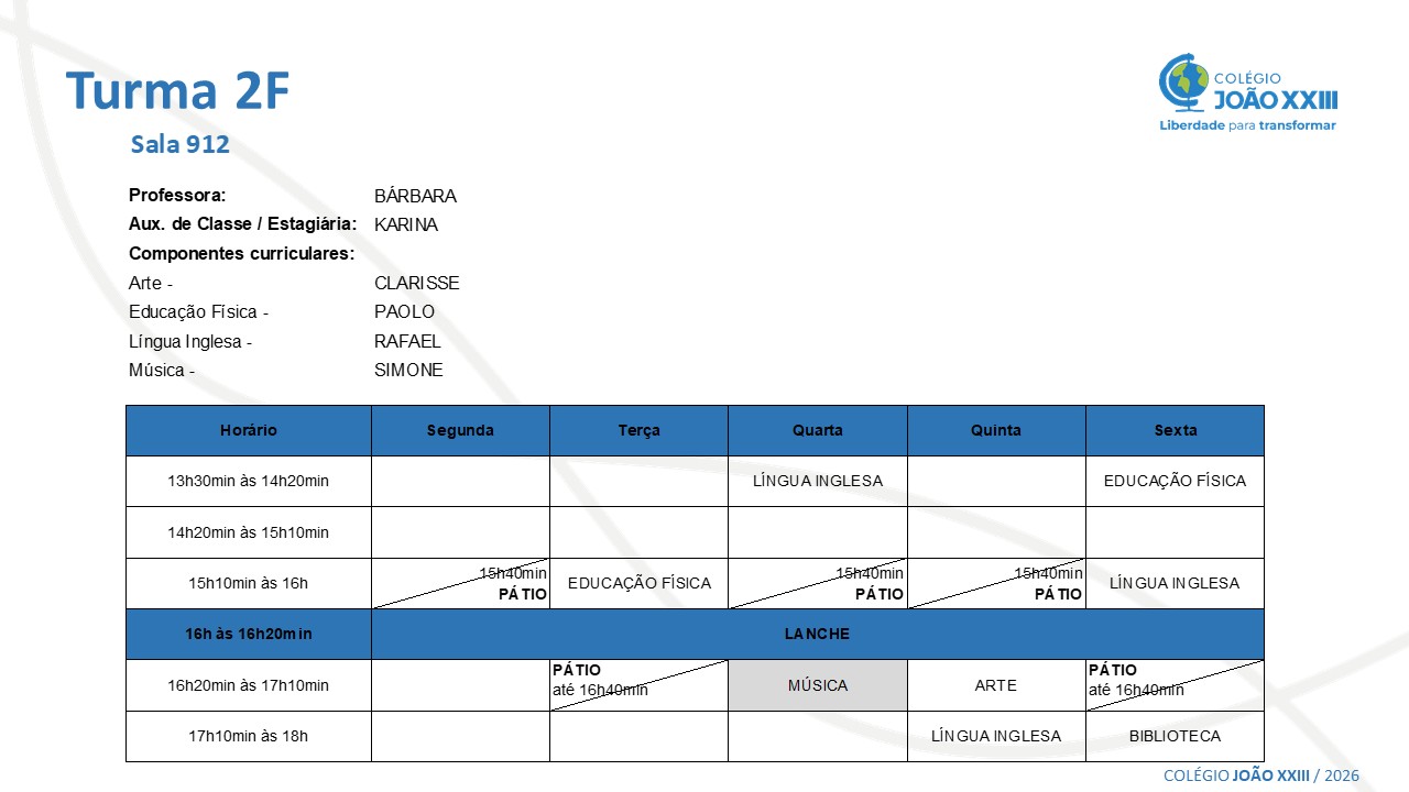 Horário Escolar: Núcleo da infância – 1º ao 4º ano