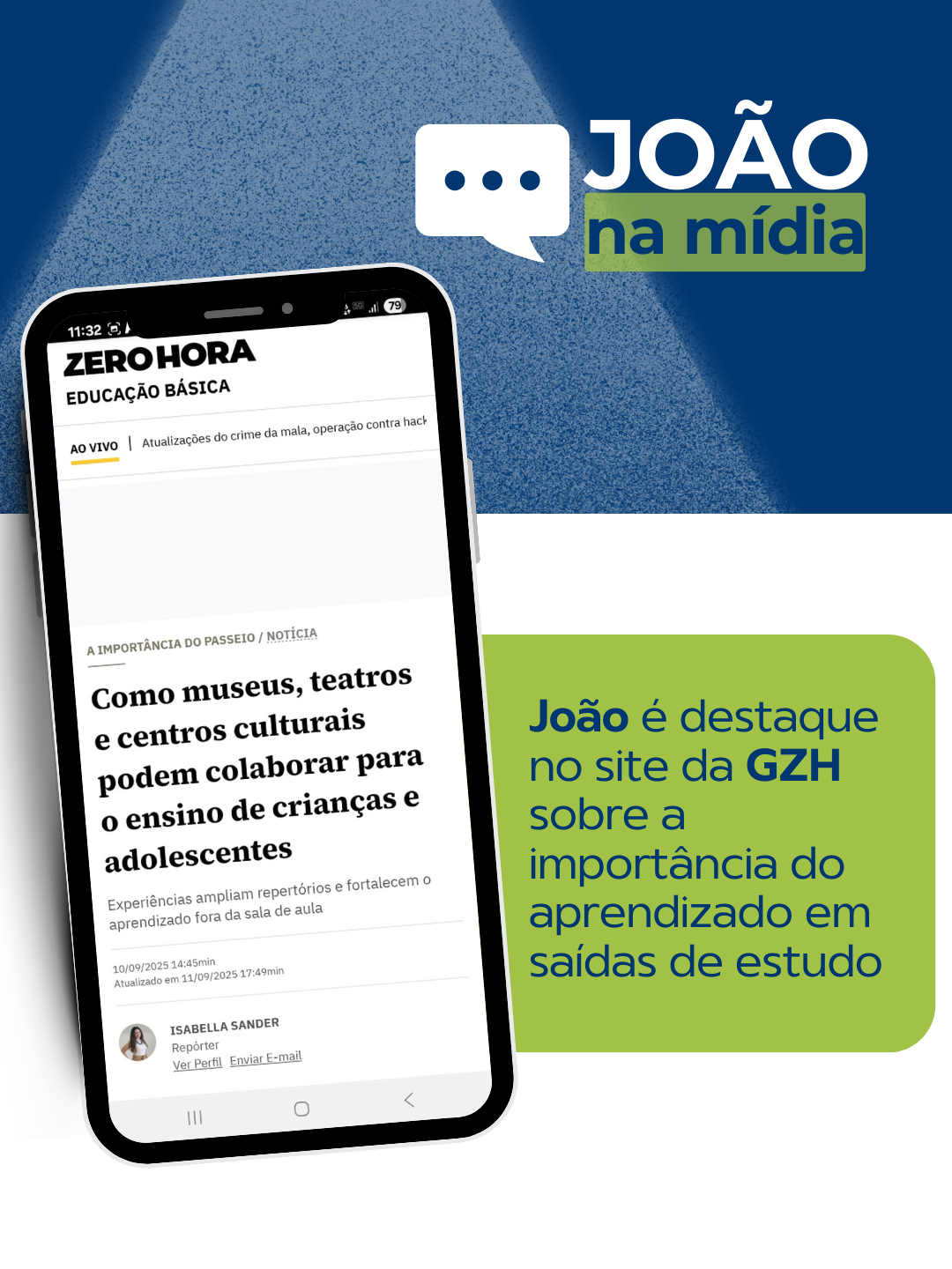 Saídas de estudos | O Colégio João XXIII foi destaque em matéria na GZH sobre como as saídas de estudos para museus, teatros, centros culturais podem colaborar no ensino dos estudantes. A diretora Paula Poli fala da importância de se ir além dos muros do Colégio na educação. A vice-diretora Fernanda Radajeski destacou algumas dessas saídas dos Anos Iniciais, Finais e Ensino Médio.