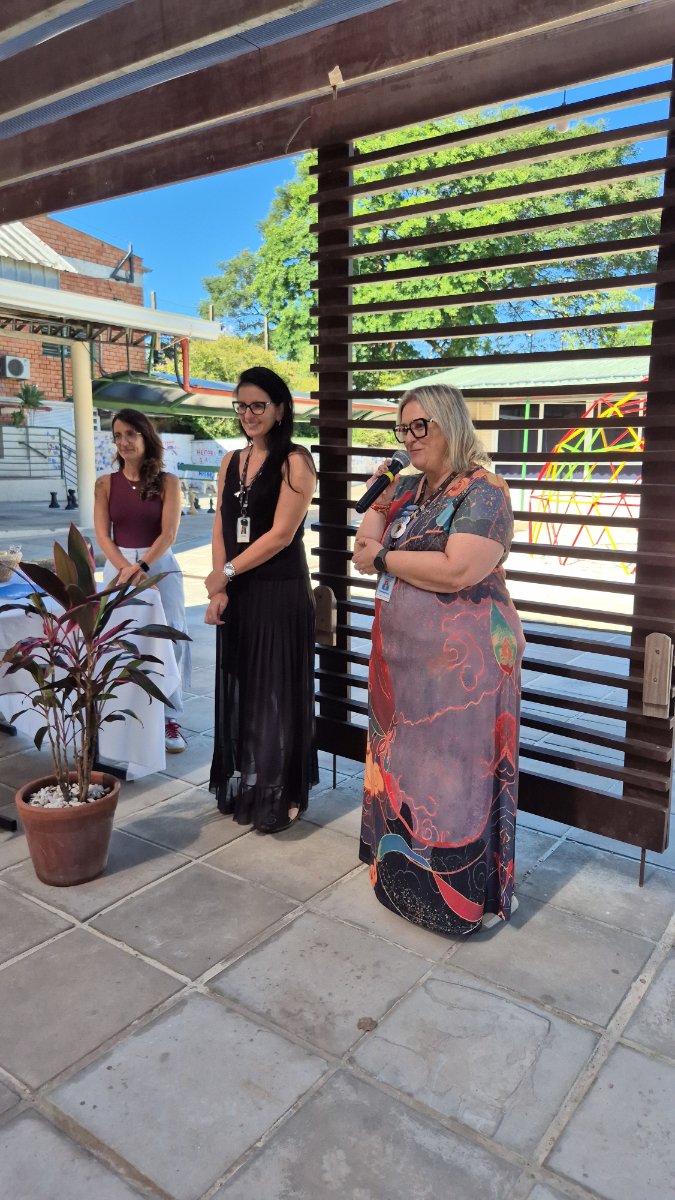 A Coordenadora Administrativo-Pedagógica, Cristina Ferreira Mello abriu a cerimônia mencionando as presenças do coordenador pedagógico do 9º ano do Ensino Fundamental à 3ª série do Ensino Médio, Bruno Correia, e das orientadoras educacionais: Melissa Klein de Abreu (6º ano), Tania Regina Machado (7º e 8º ano) e Fabiana Catalani Lisboa (9º ano do EF ao EM).