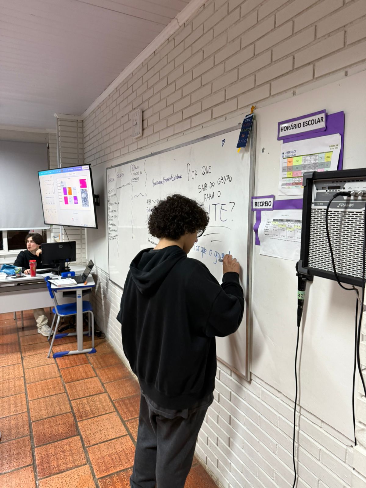 Enquanto os jovens do 9º ano ao EM trabalharam a rotina de consumo excessivo da persona João, como a compra de uniformes, roupas, acessórios e tênis, sem pensar no impacto ambiental e na sustentabilidade e sem utilizar o grupo de WhatsApp “Desapega” e o Brechó do Colégio. O desafio era criar um recurso tecnológico criativo para ampliar o reaproveitamento de materiais e produtos no contexto escolar e que ajudasse a persona a encontrá-los.