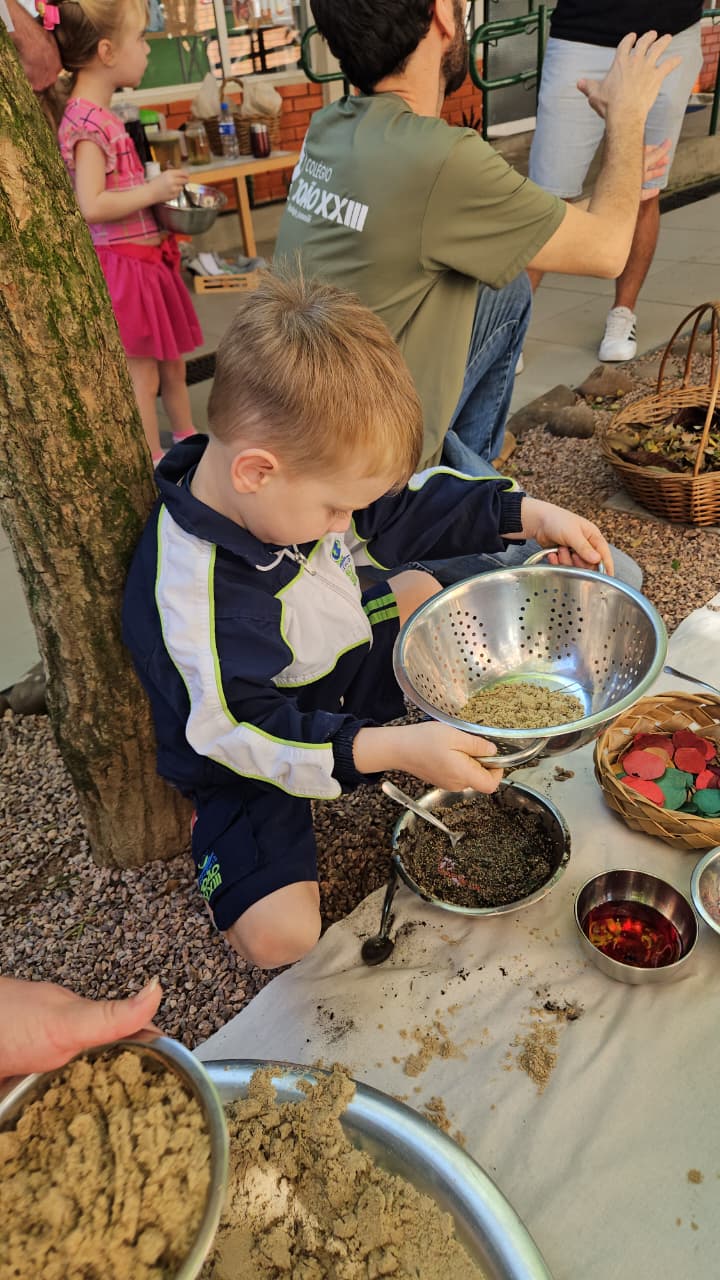 Ainda na manhã de sábado, em comemoração ao aniversário do Colégio, aconteceu o evento “Vivências Compartilhadas”, espaço de encontro e compartilhamento de experiências vividas pelas crianças da Educação Infantil no cotidiano escolar. O evento proporcionou um momento de integração entre Colégio, as crianças e suas famílias numa programação diversa, com atividades que envolveram experiências sensoriais e criativas com a natureza: “Vamos brincar com gravetos?”, “Vamos brincar com barro e argila?” e “Vamos brincar de misturas e poções mágicas?”.