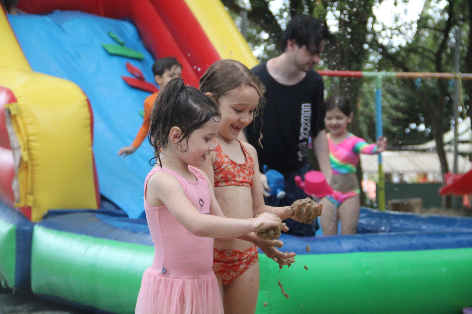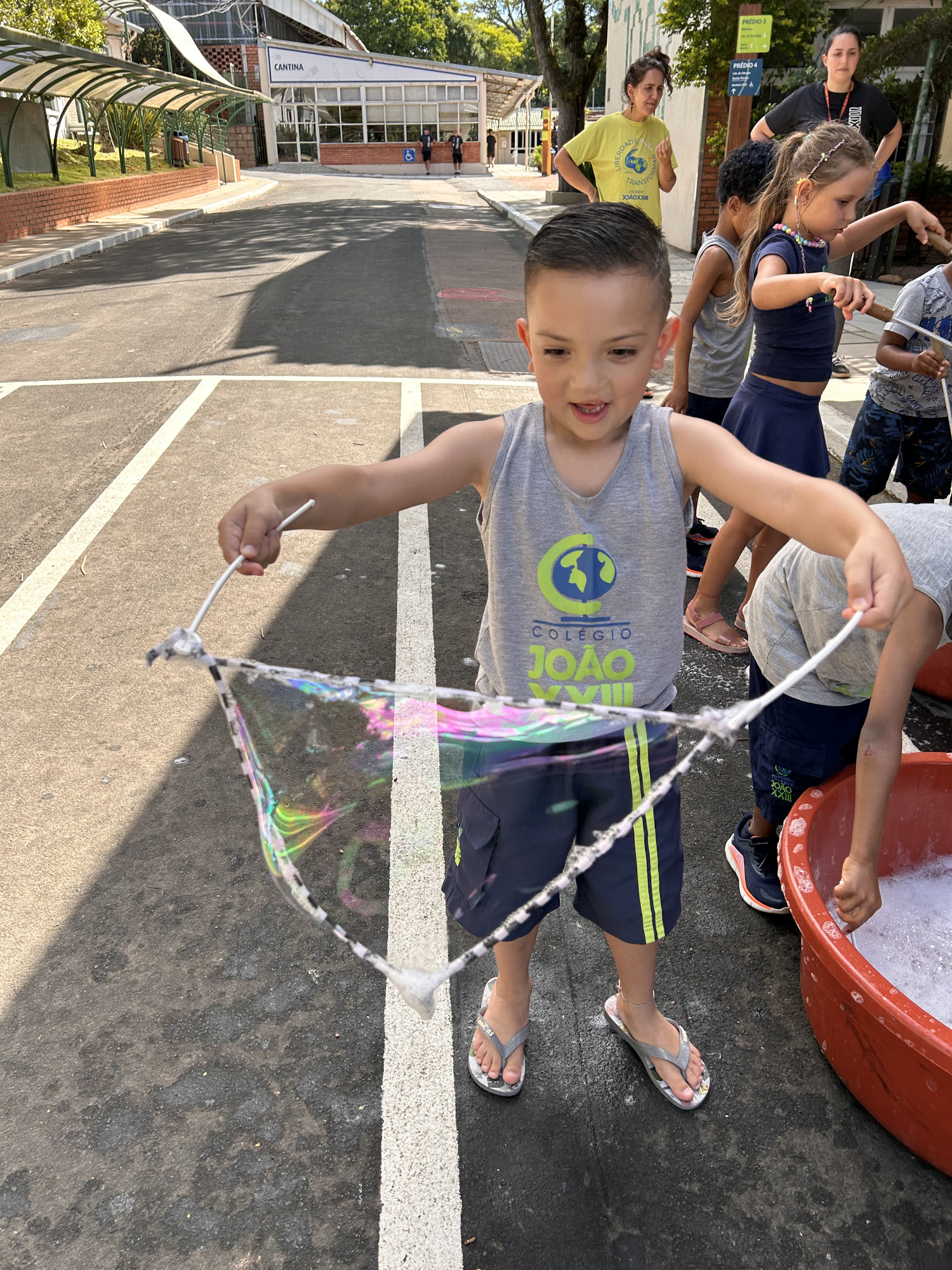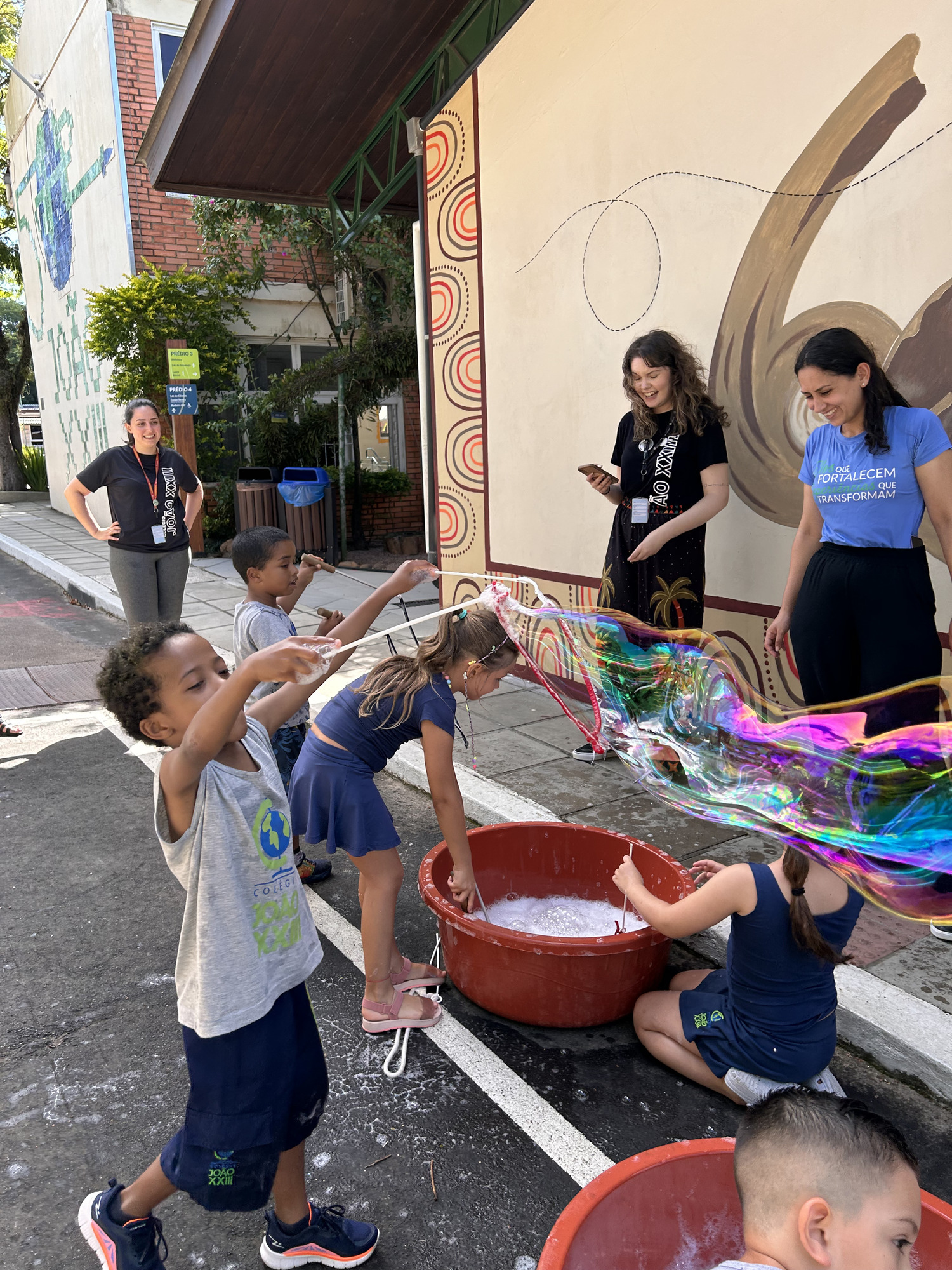 As crianças se divertiram, dançaram, fizeram bolas de sabão gigantes, “Tie Dye” em camisetas, confeccionaram chaveiros e realizaram experiências incríveis no laboratório de ciências. Para amenizar o calor, as crianças se jogaram nos brinquedos infláveis com piscina, tomaram banho de mangueira, se refrescaram com picolés, sacolés e um buffet de frutas com sorvete. Nas oficinas livres, produziram pulseiras de miçangas, aprenderam a tear, desenharam, coloriram e fizeram pinturas no rosto.