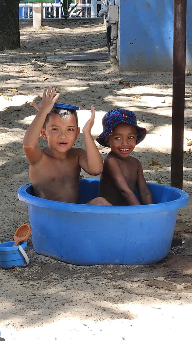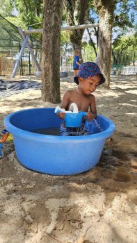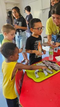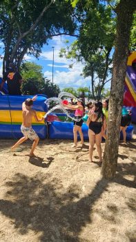 A diversão ficou por conta dos brinquedos infláveis de toboágua, que refrescaram os dias quentes de janeiro. A exploração dos espaços do João XXIII foi intensa com trilhas de descoberta, tornando as férias mais emocionantes e instigantes com o corredor sensorial que propiciou brincadeiras plurisensoriais. E, não poderia faltar a dimensão artística, com a criação de pulseiras de miçangas e mandalas. Além disso, o riso esteve garantido com a apresentação de teatro do espetáculo “Tuíga Solito – Um solo de um palhaço só”.