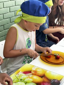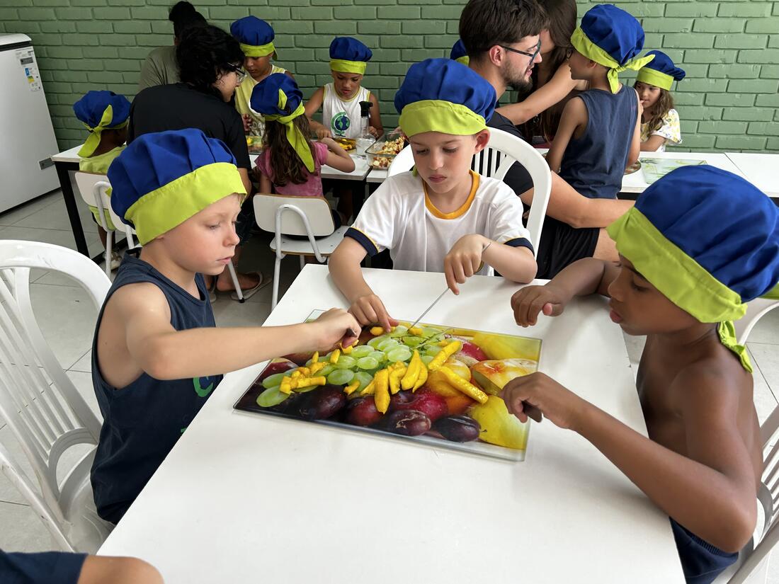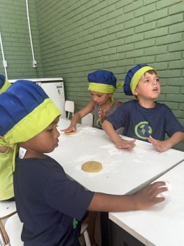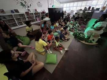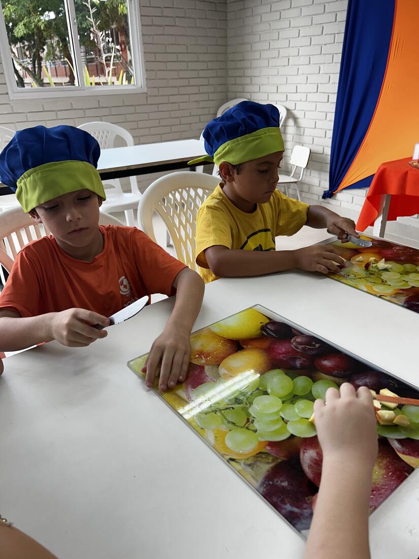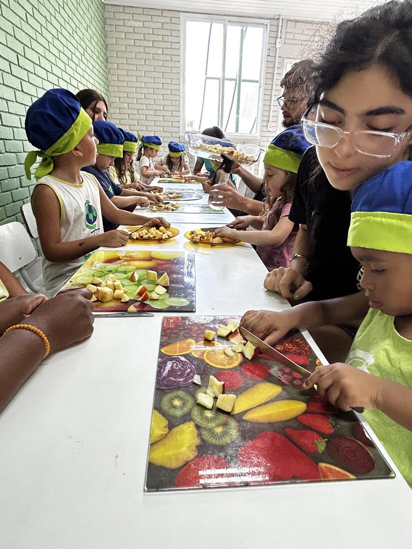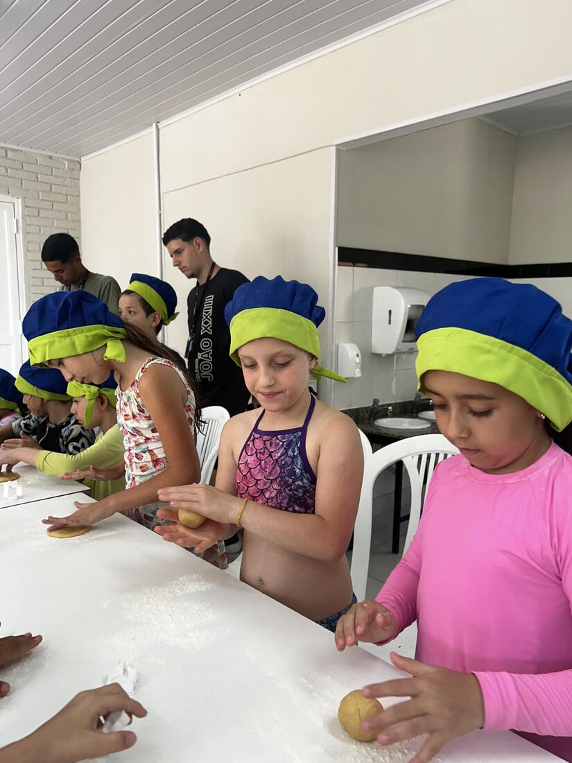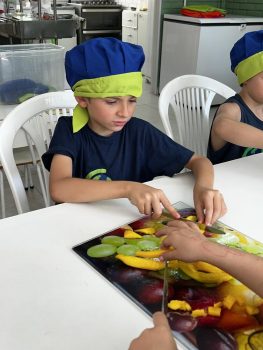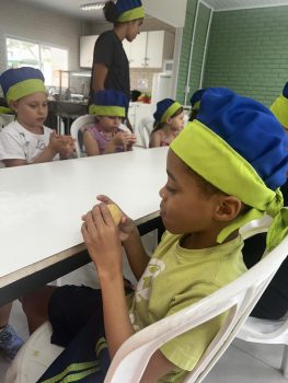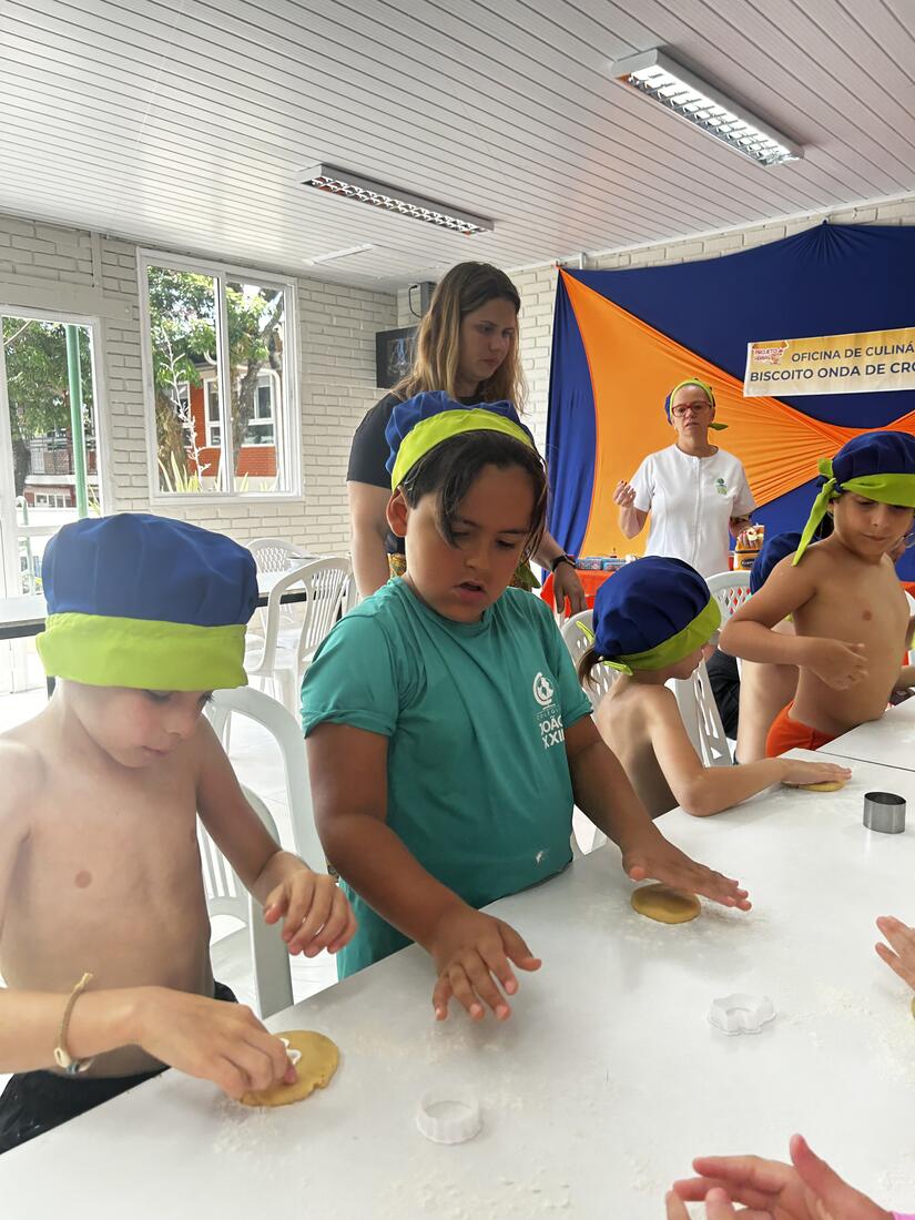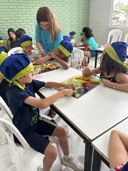 As vivências ao ar livre e experiências nas mais diversas linguagens tornaram as férias das crianças, do maternal ao 4º do Ensino Fundamental, ainda mais divertidas, com aulas de culinária, onde elas aprenderam a fazer gelatina com frutas e biscoitos, com a ajuda da nutricionista Joseane Mancio. Também se lambuzaram com sacolés de uva e se encantaram com a contação de histórias na sala ambientada na biblioteca, com a Mayura de Matos.