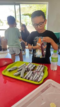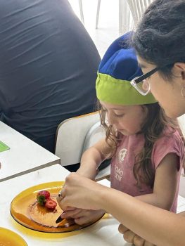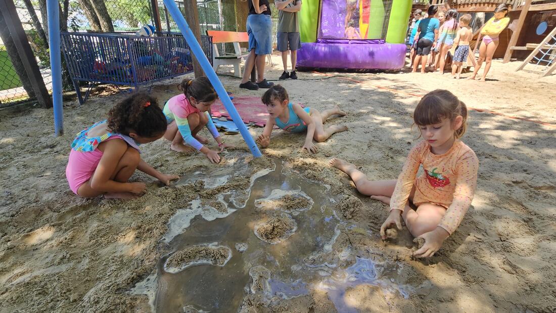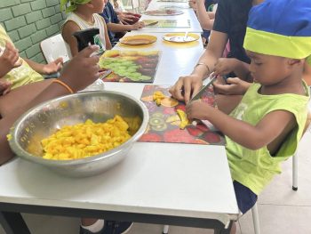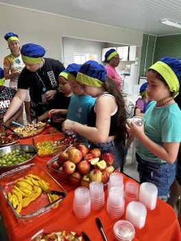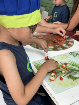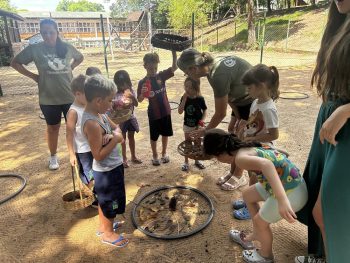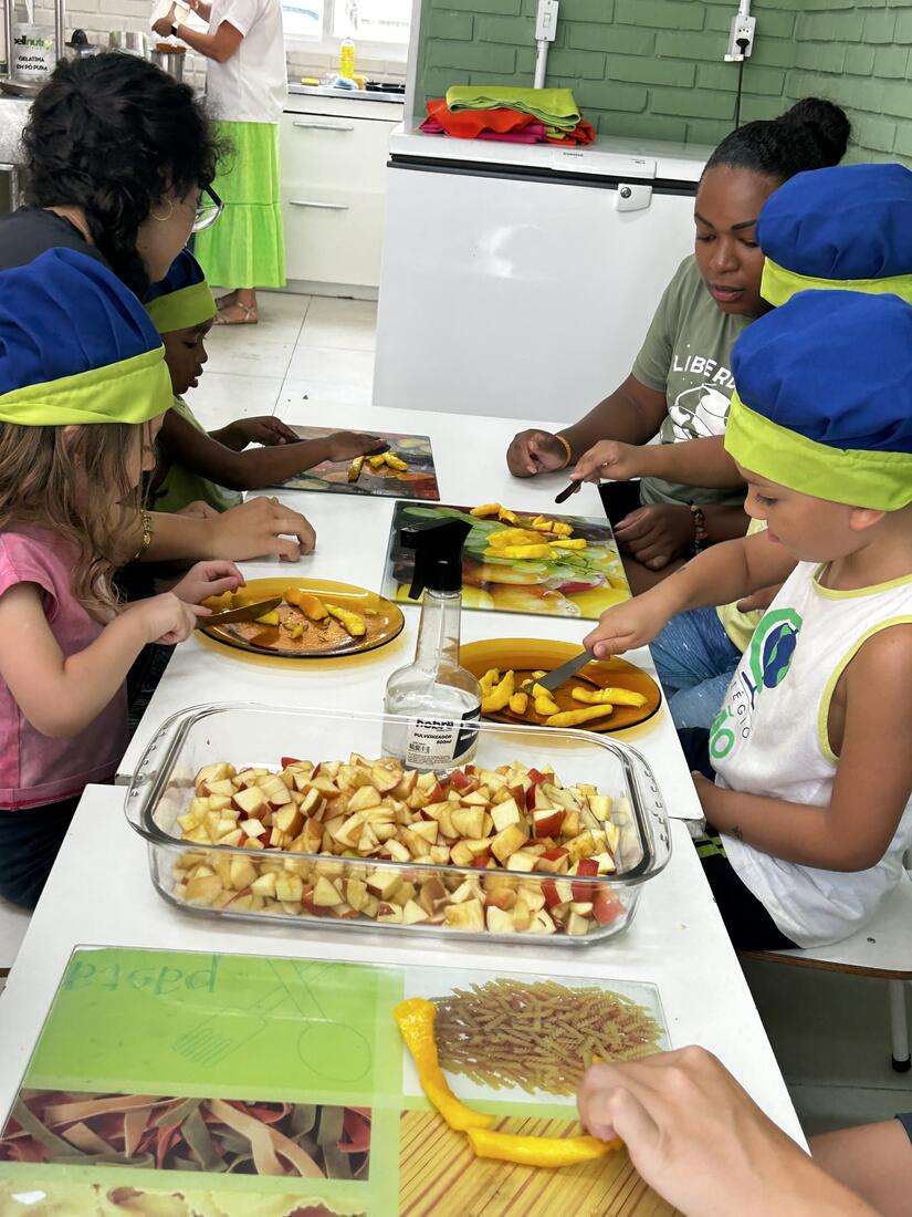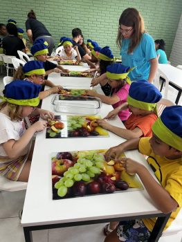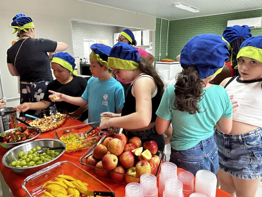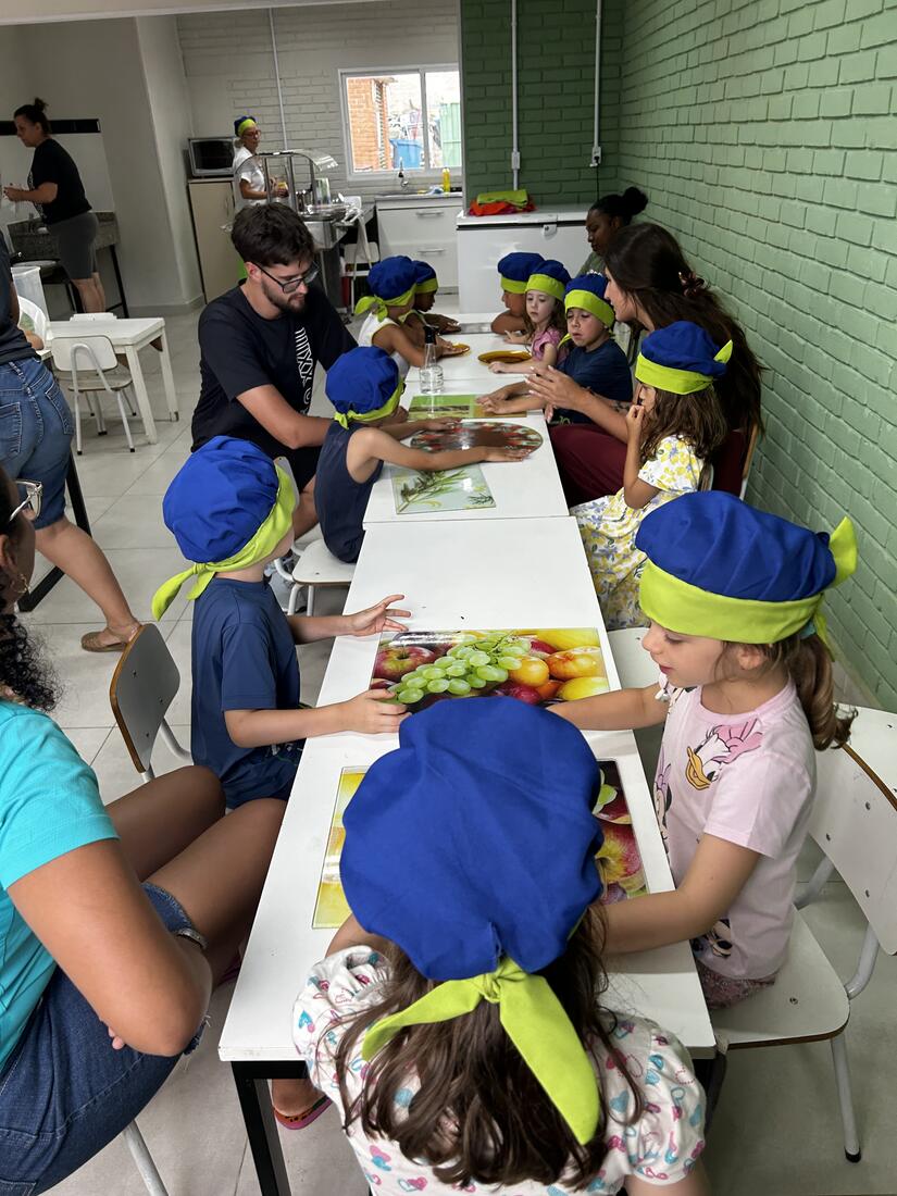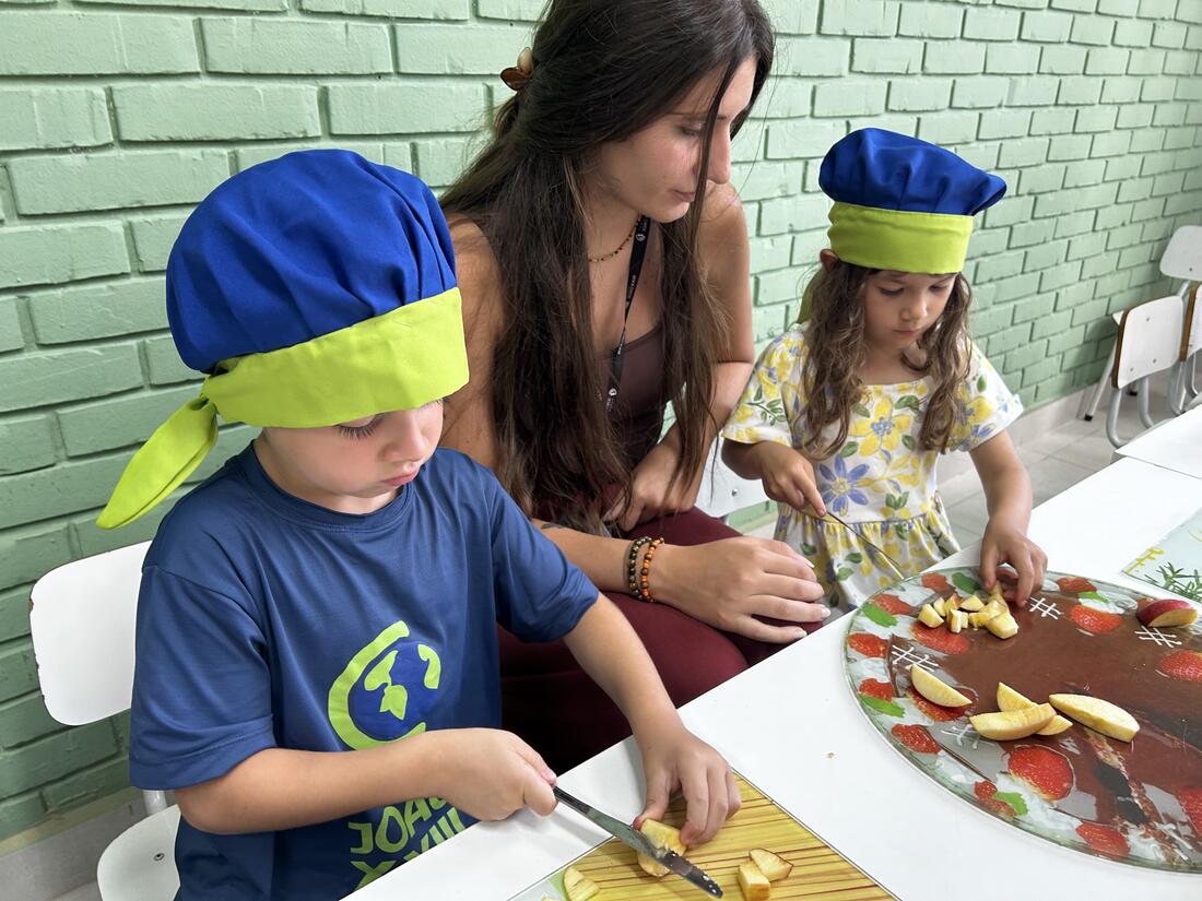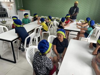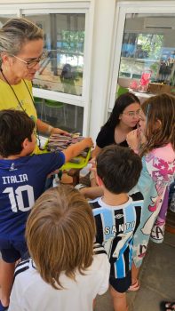 As vivências ao ar livre e experiências nas mais diversas linguagens tornaram as férias das crianças, do maternal ao 4º do Ensino Fundamental, ainda mais divertidas, com aulas de culinária, onde elas aprenderam a fazer gelatina com frutas e biscoitos, com a ajuda da nutricionista Joseane Mancio. Também se lambuzaram com sacolés de uva e se encantaram com a contação de histórias na sala ambientada na biblioteca, com a Mayura de Matos.
