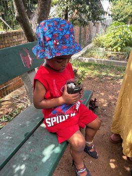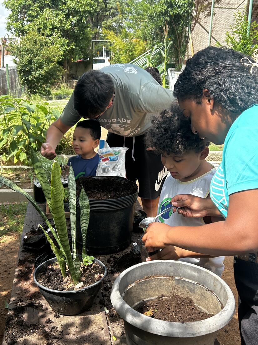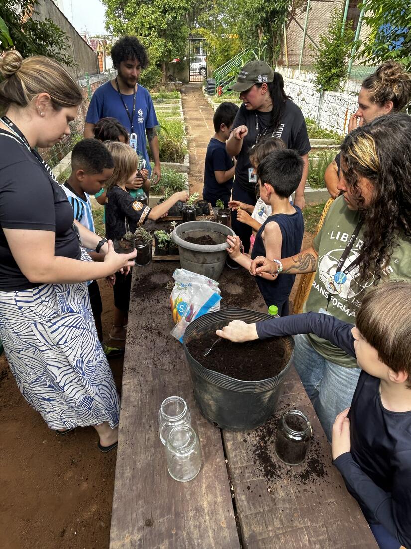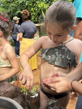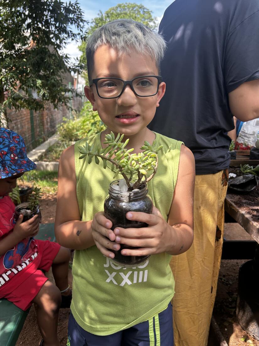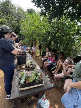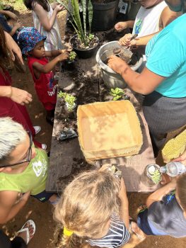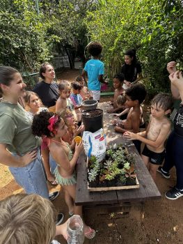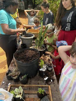 Para fechar esses 10 dias intensos, as crianças foram à horta para fazer seu Pote Mágico, que consistia em plantar mudas de suculentas em potes de vidro, decorados por elas. Após o plantio, elas levaram suas produções para casa, para que junto à família sigam cuidando e acompanhando o crescimento das plantinhas.