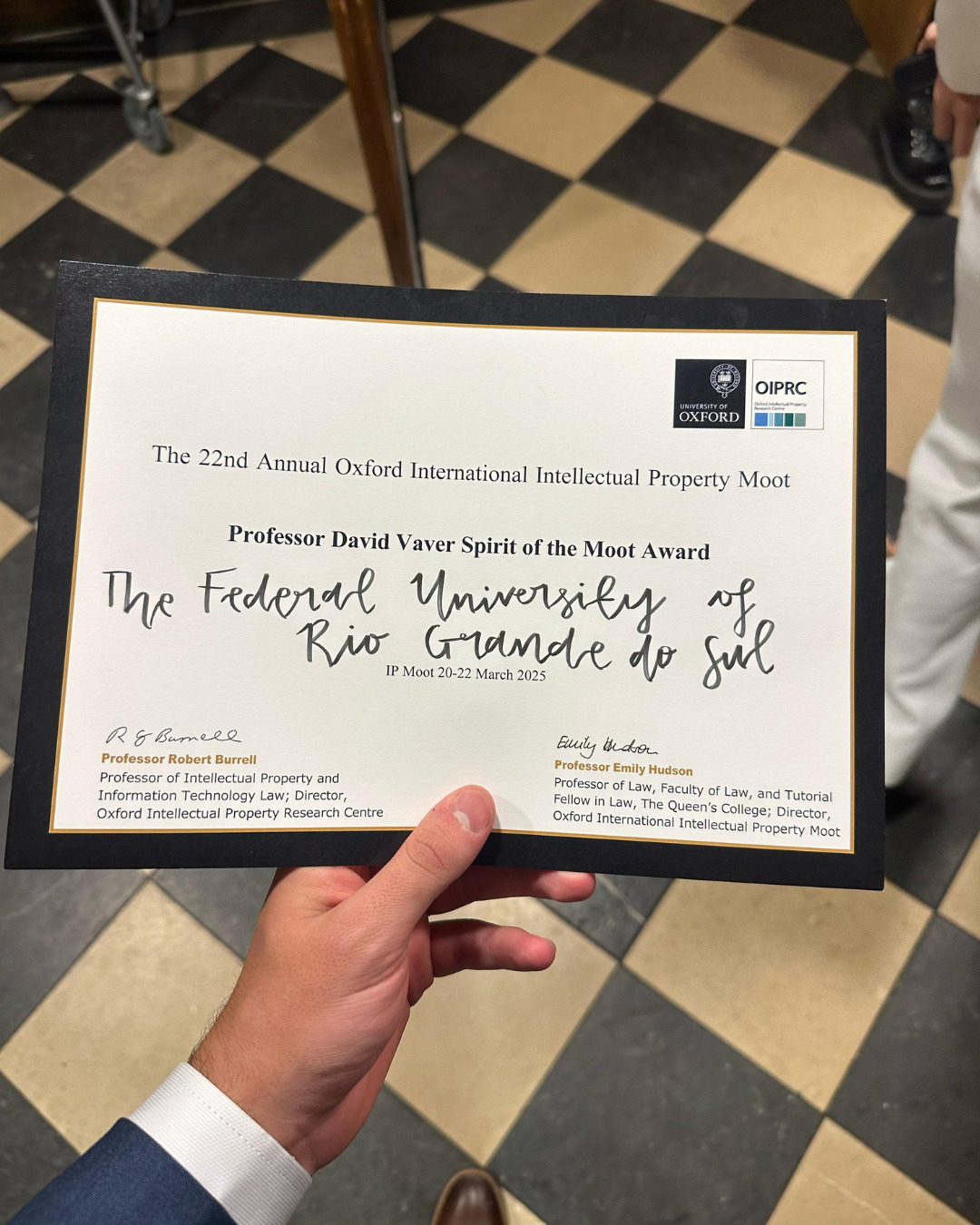 A equipe de competição foi a única selecionada da América Latina para participar das rodadas orais da 22ª edição da Oxford International Intellectual Property Moot. A disputa ocorreu presencialmente, entre os dias os dias 19 a 22 de março de 2025 na Universidade de Oxford, na Inglaterra.