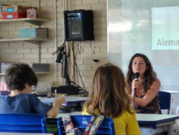 “As aulas de música com a professora Ana Maestri nos ensinavam mais que música, ensináva-nos cultura. Aprendi a tocar flauta com ela e, apesar de não ser muito boa, hoje em dia valorizo os ensinamentos que tive. Depois, com o professor Marcelo, também de música, tivemos uma formação bastante densa em teoria musical e, de novo, em cultura da música brasileira. Sou muito grata a isso, especialmente porque deixei o Brasil com 16 anos e, uma forma de me conectar com o meu país e com a minha cultura é através da música.”