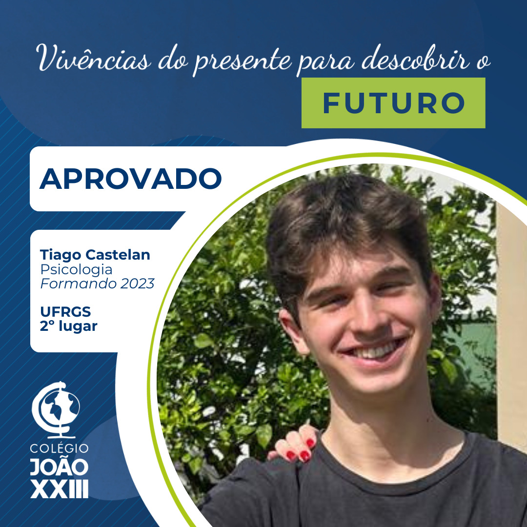 - Tiago Castelan – Psicologia – 2º lugar (formando do Colégio em 2023)